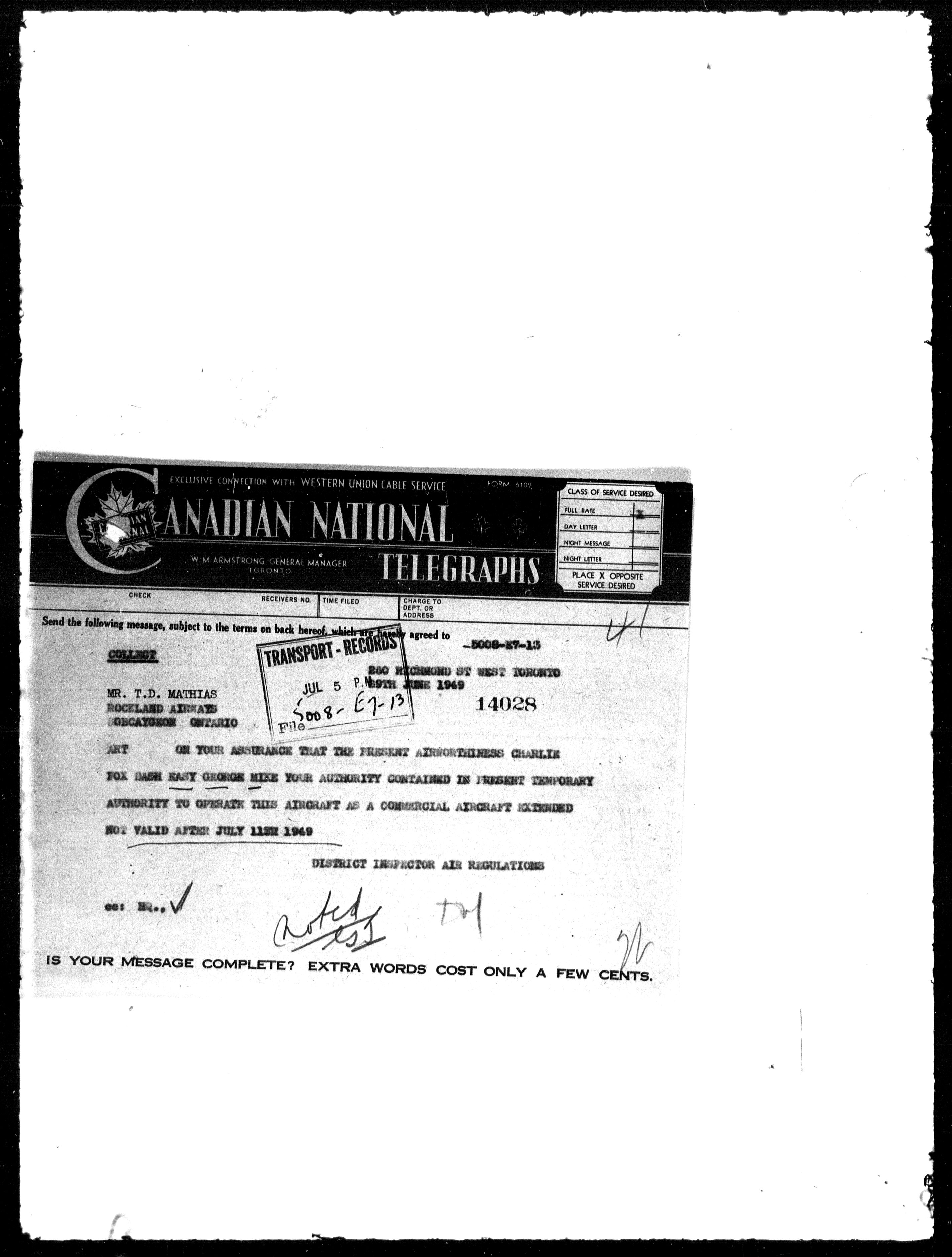 Department of Transport : Civil aircraft registration, inspection and operation files, block 5008, 1920-1986 - 7920