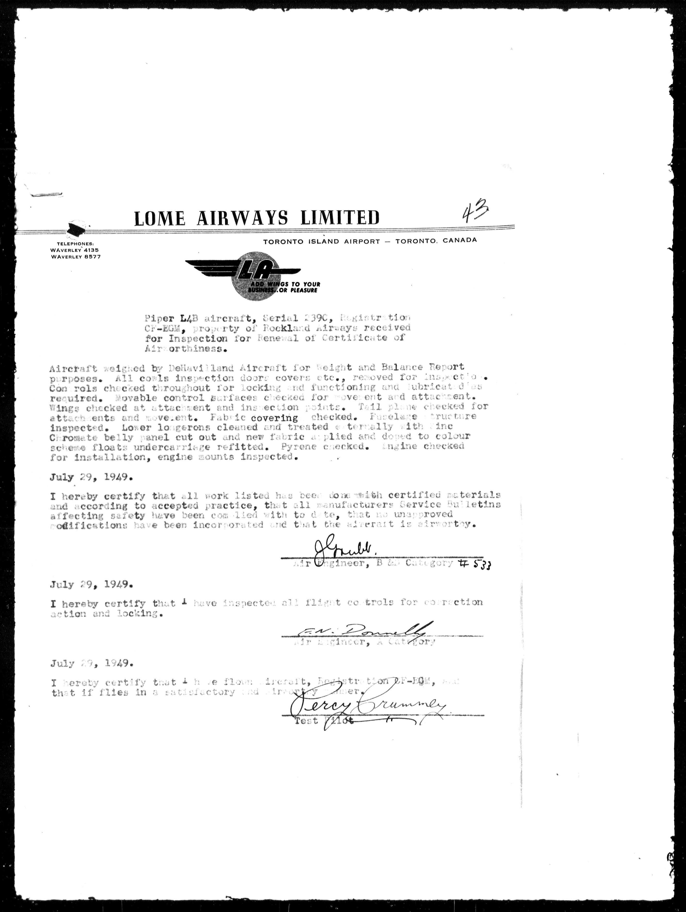 Department of Transport : Civil aircraft registration, inspection and operation files, block 5008, 1920-1986 - 7920