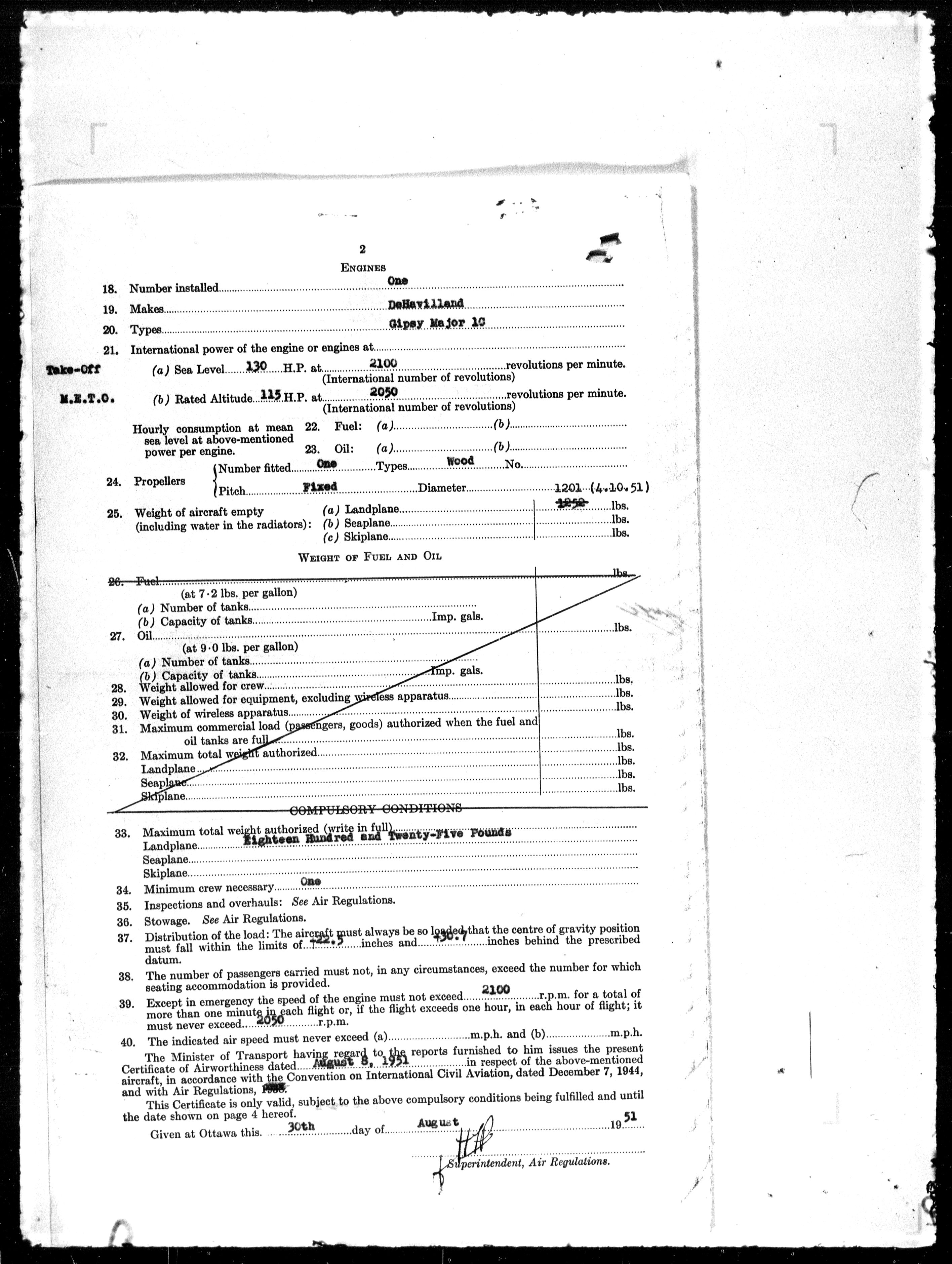Department of Transport : Civil aircraft registration, inspection and operation files, block 5008, 1920-1986 - 7920