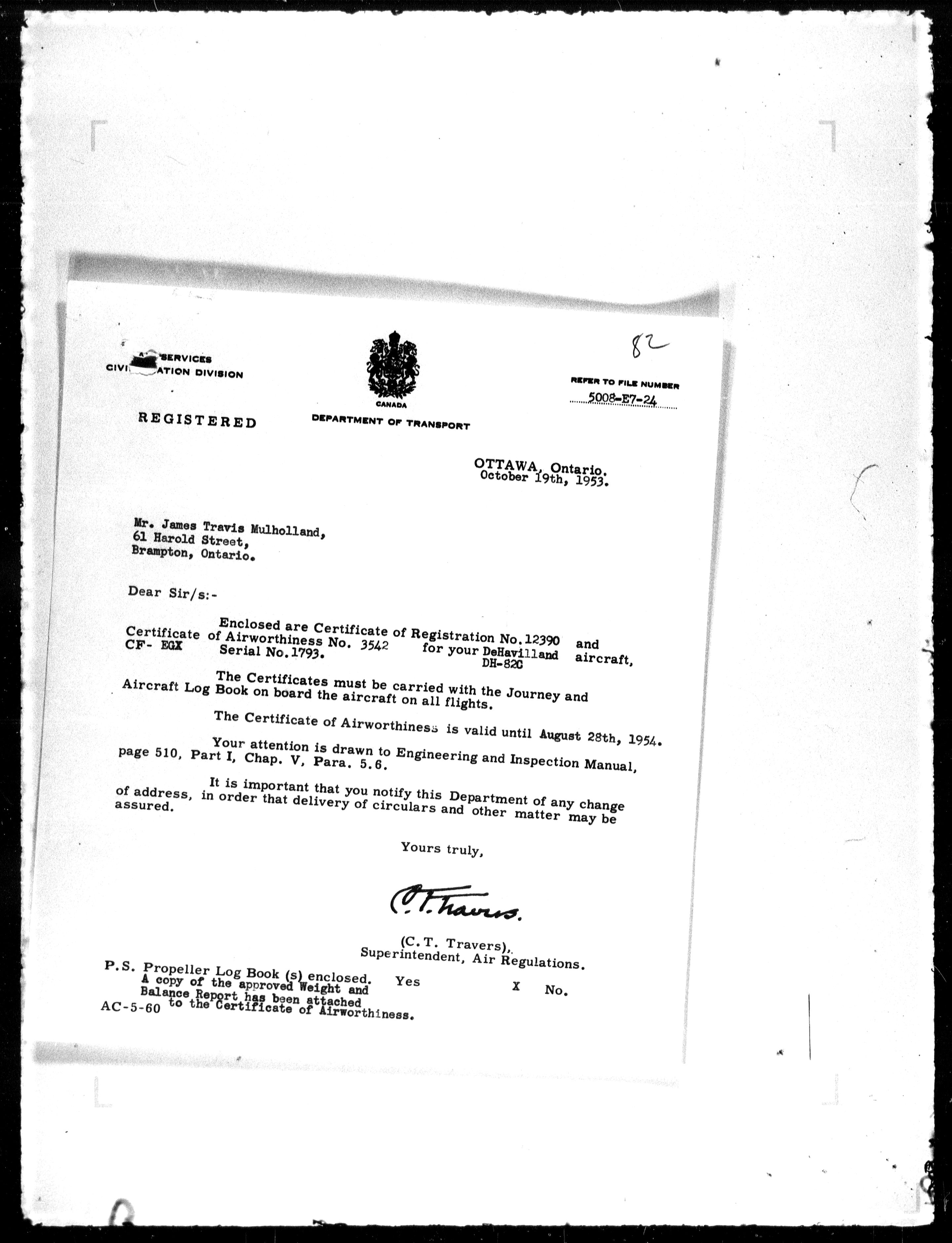 Department of Transport : Civil aircraft registration, inspection and operation files, 1920-1986 : T-7920