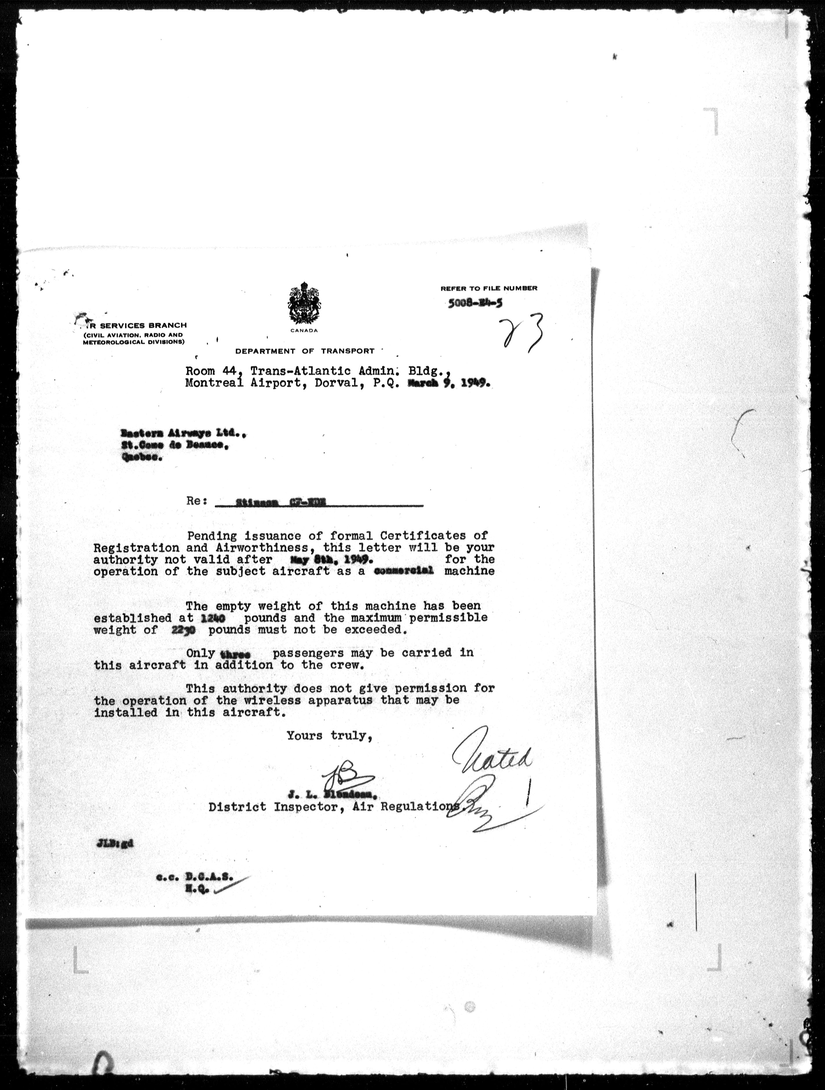 Department of Transport : Civil aircraft registration, inspection and operation files, block 5008, 1920-1986 - 7920