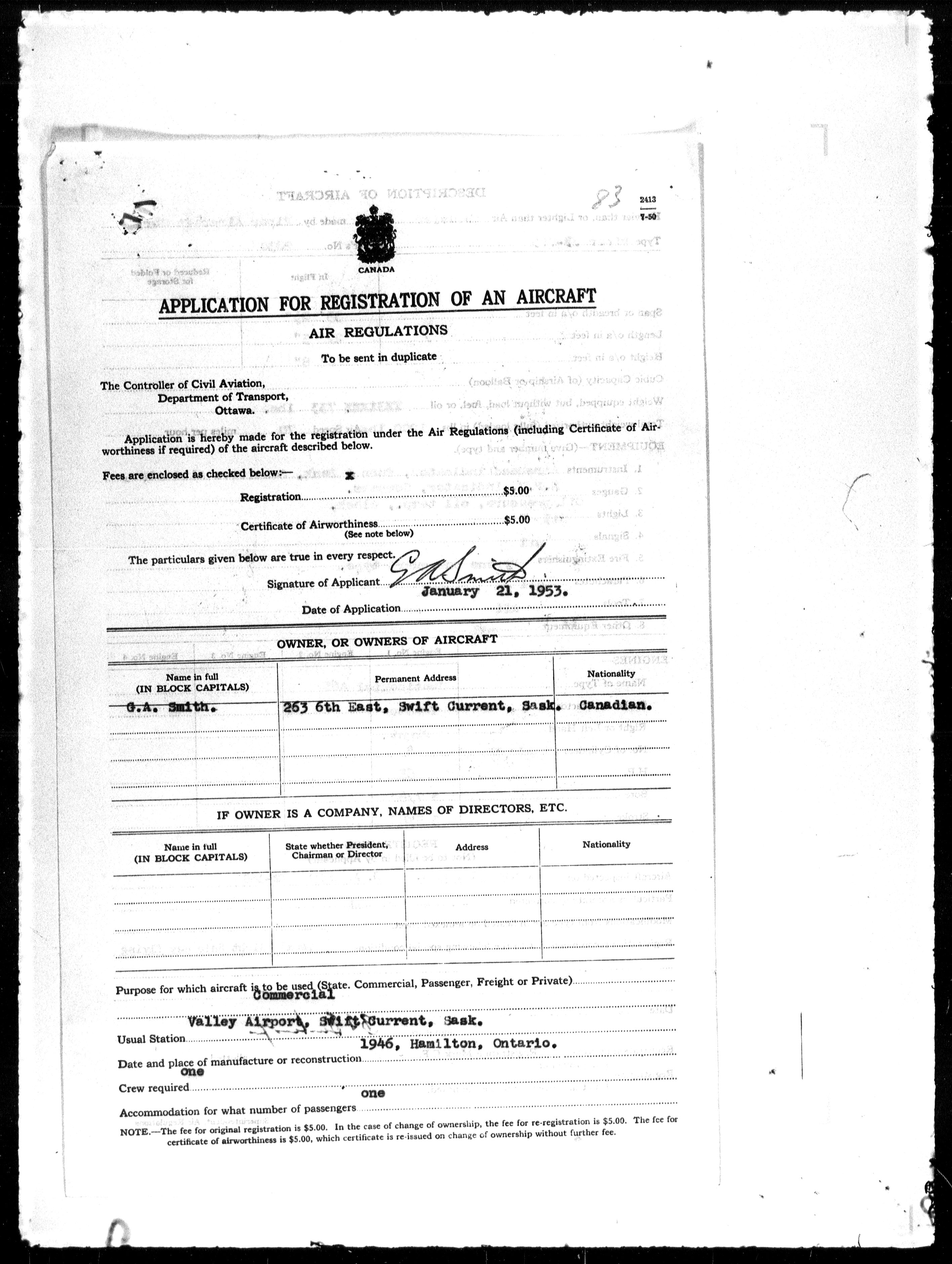 Department of Transport : Civil aircraft registration, inspection and operation files, 1920-1986 : T-7920
