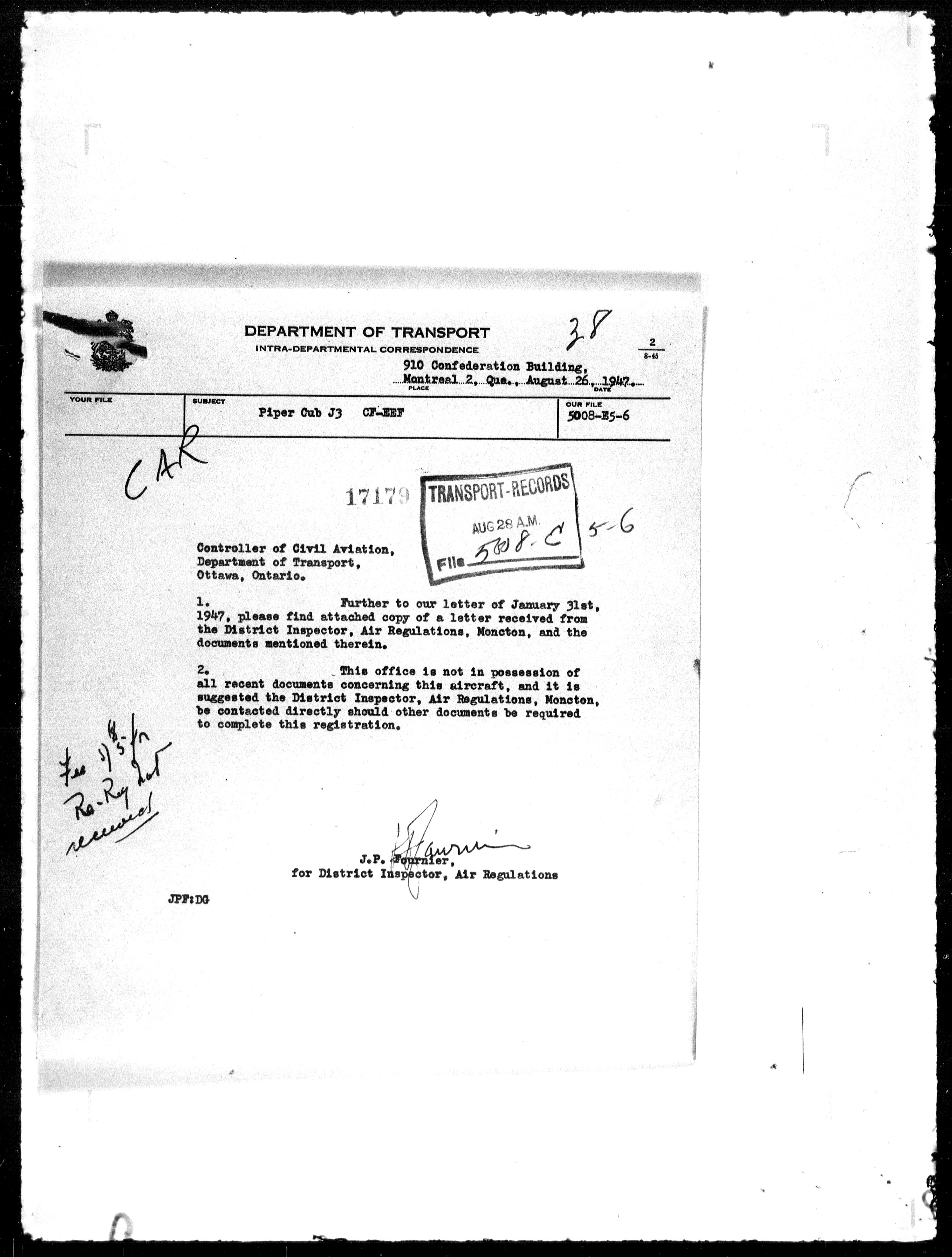 Department of Transport : Civil aircraft registration, inspection and operation files, block 5008, 1920-1986 - 7920