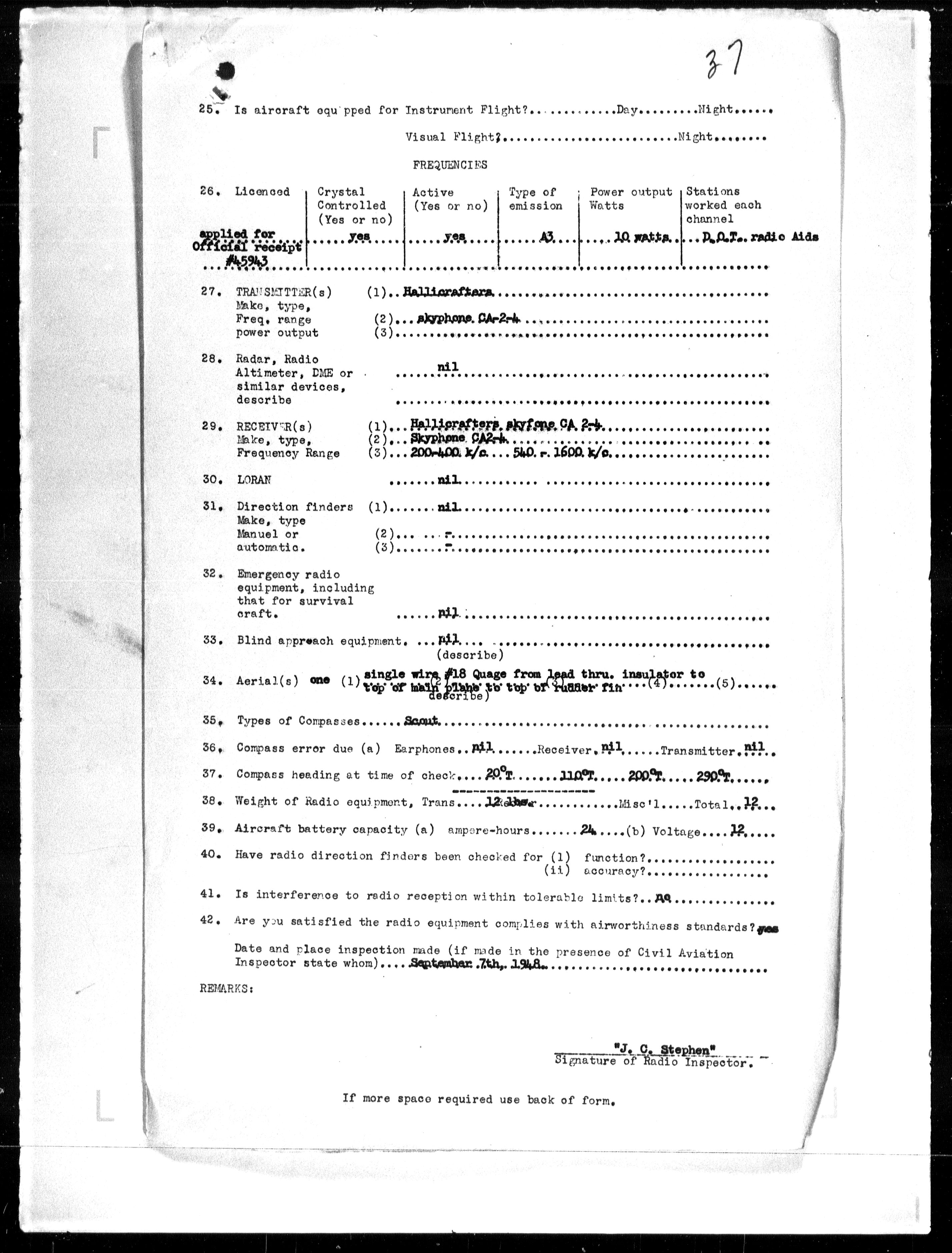 Department of Transport : Civil aircraft registration, inspection and operation files, block 5008, 1920-1986 - 7922
