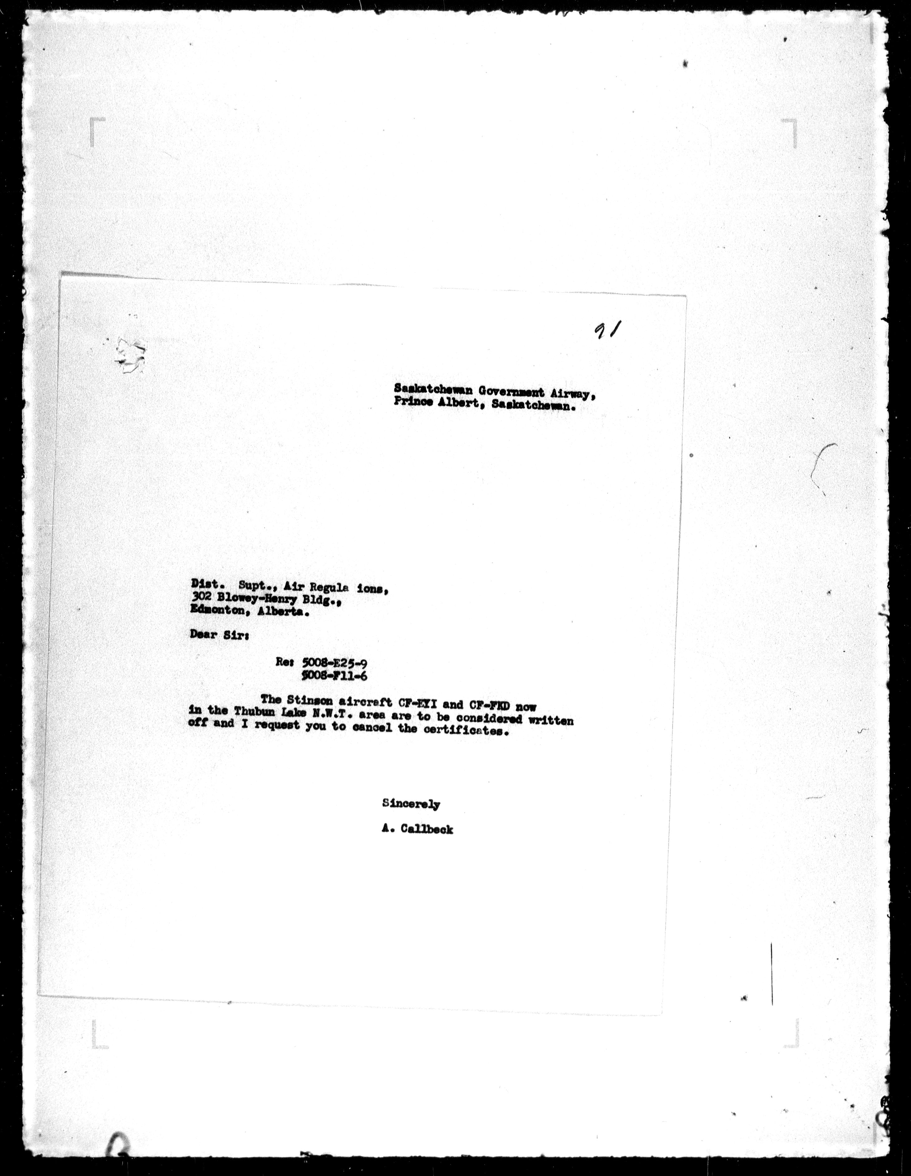 Department of Transport : Civil aircraft registration, inspection and operation files, block 5008, 1920-1986 - 7923