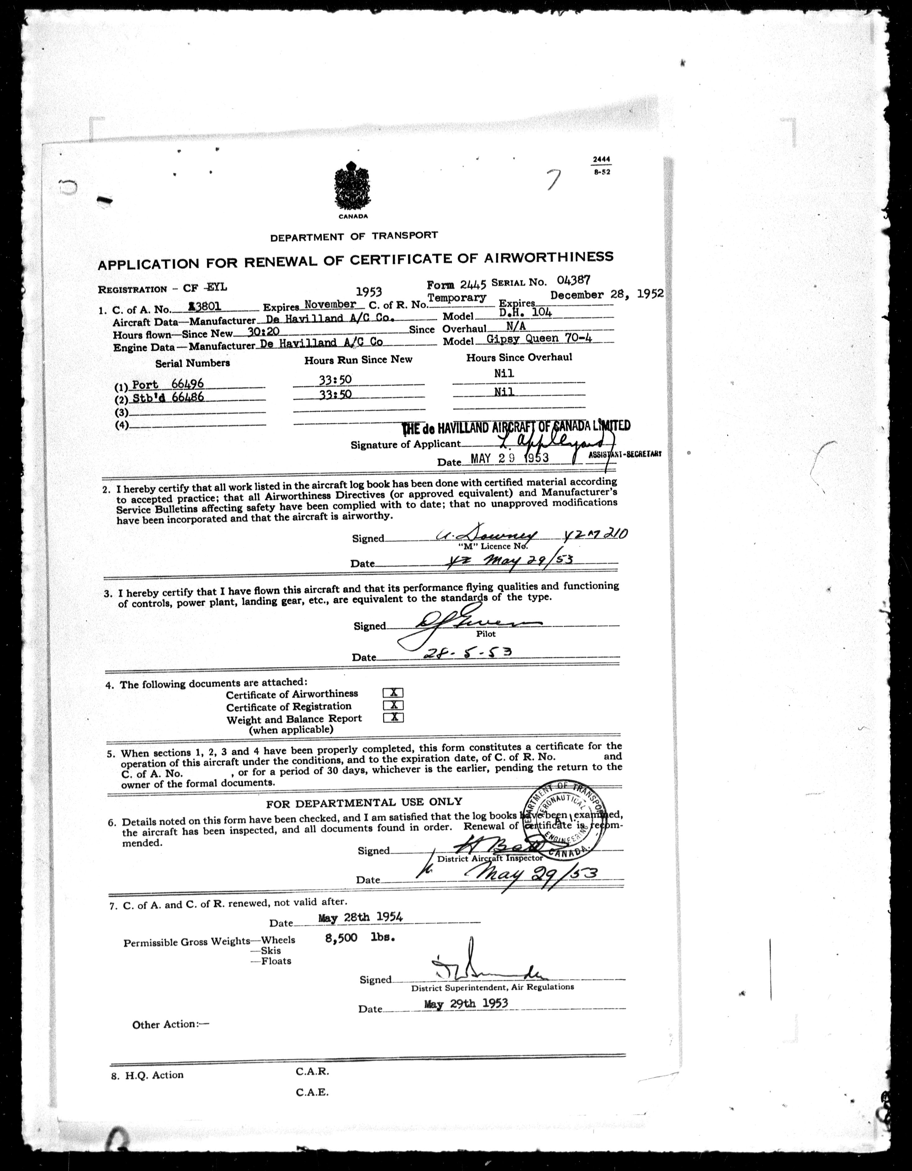 Department of Transport : Civil aircraft registration, inspection and operation files, 1920-1986 : T-7923
