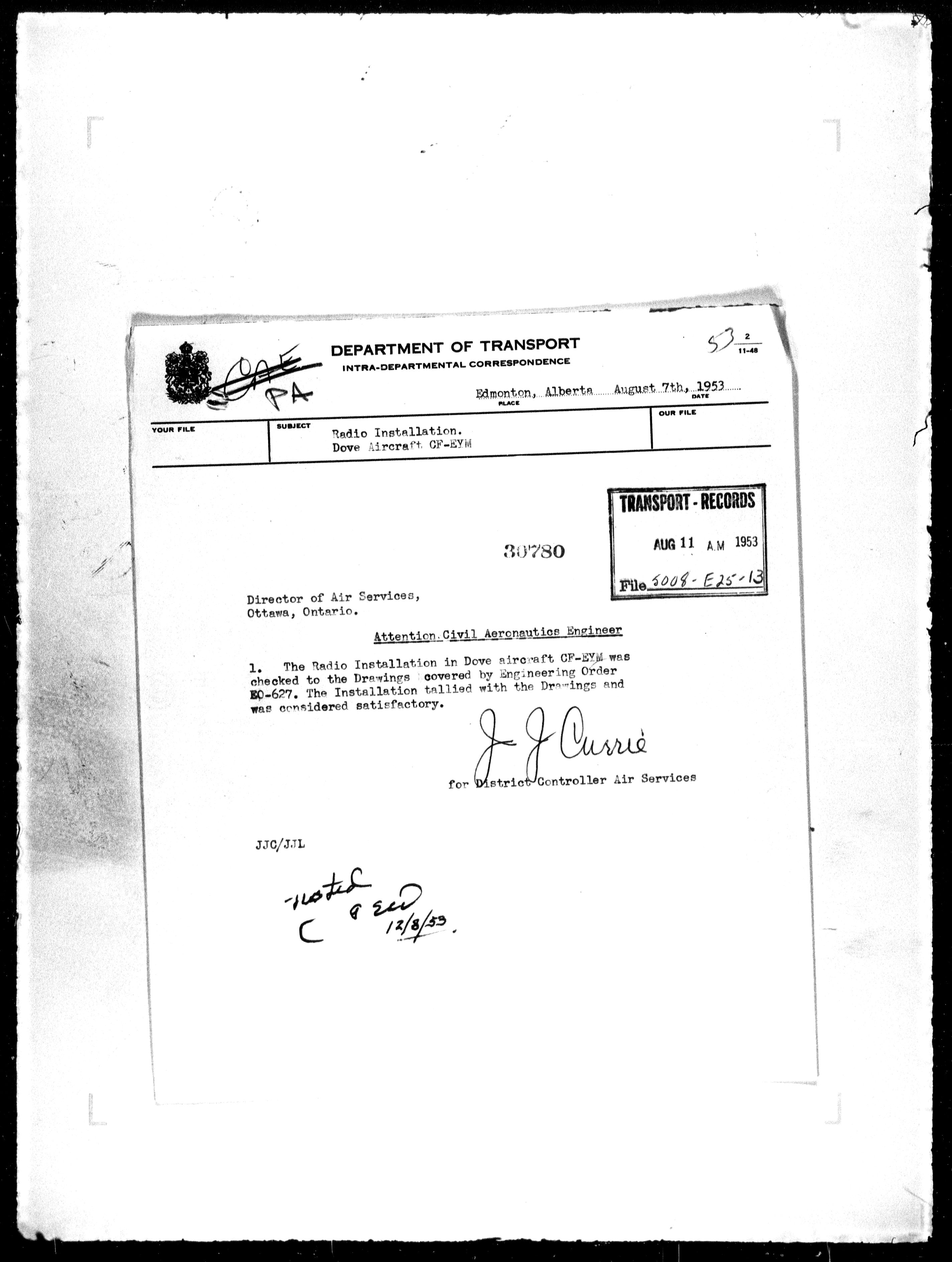 Department of Transport : Civil aircraft registration, inspection and operation files, block 5008, 1920-1986 - 7924