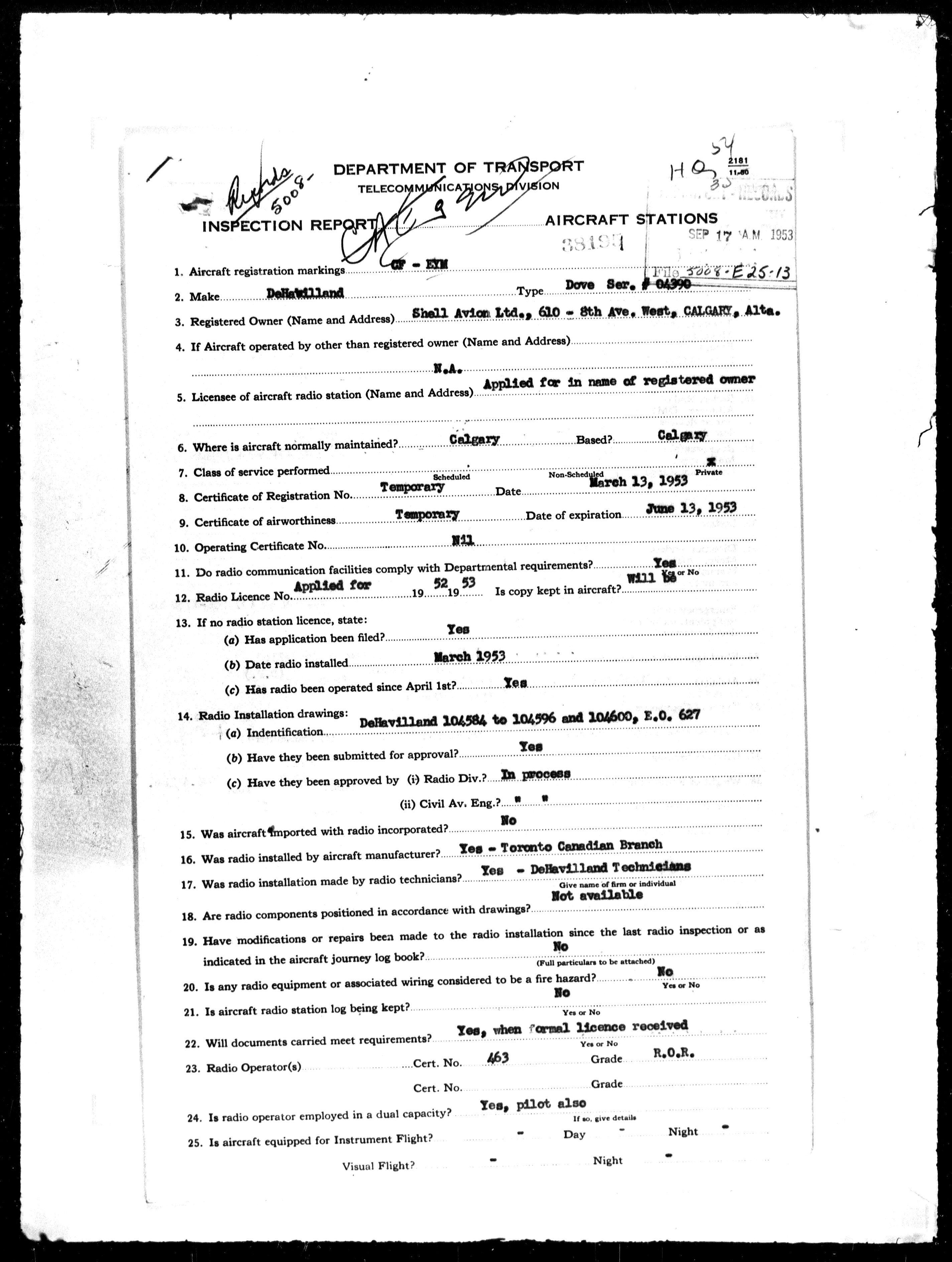 Department of Transport : Civil aircraft registration, inspection and operation files, block 5008, 1920-1986 - 7924