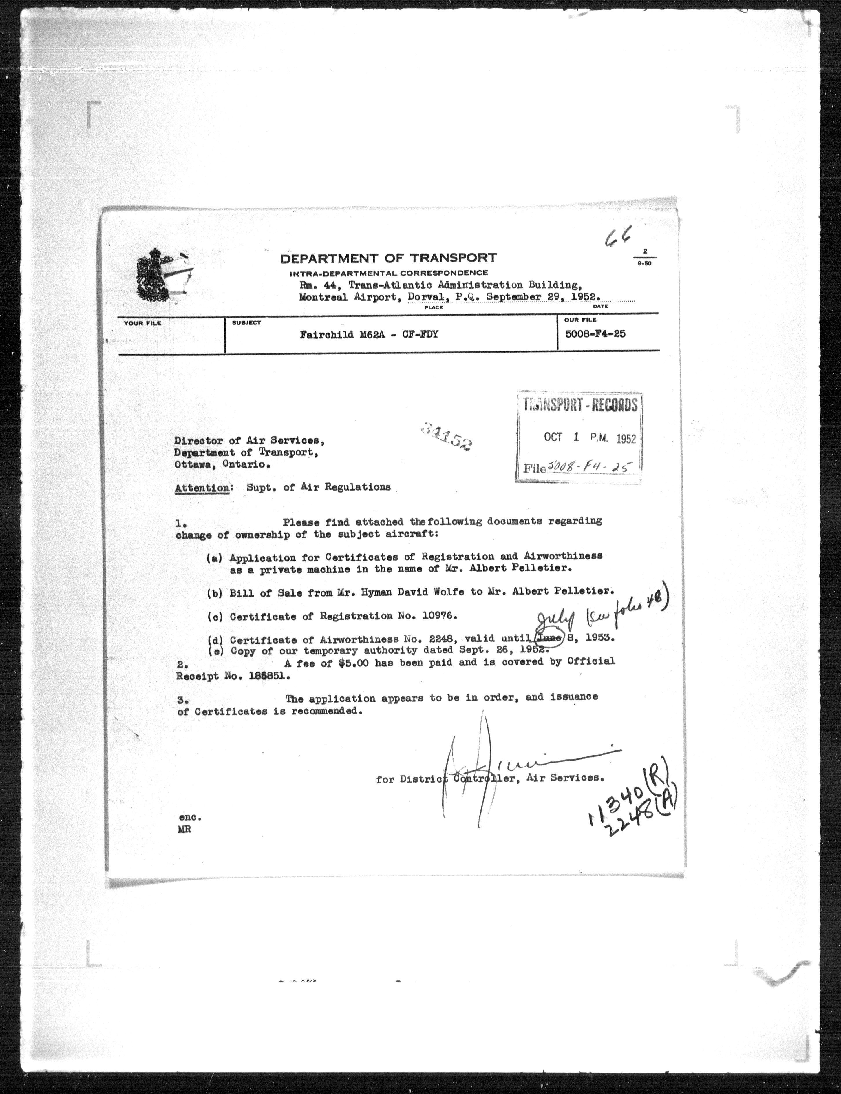 Department of Transport : Civil aircraft registration, inspection and operation files, block 5008, 1920-1986 - 7925