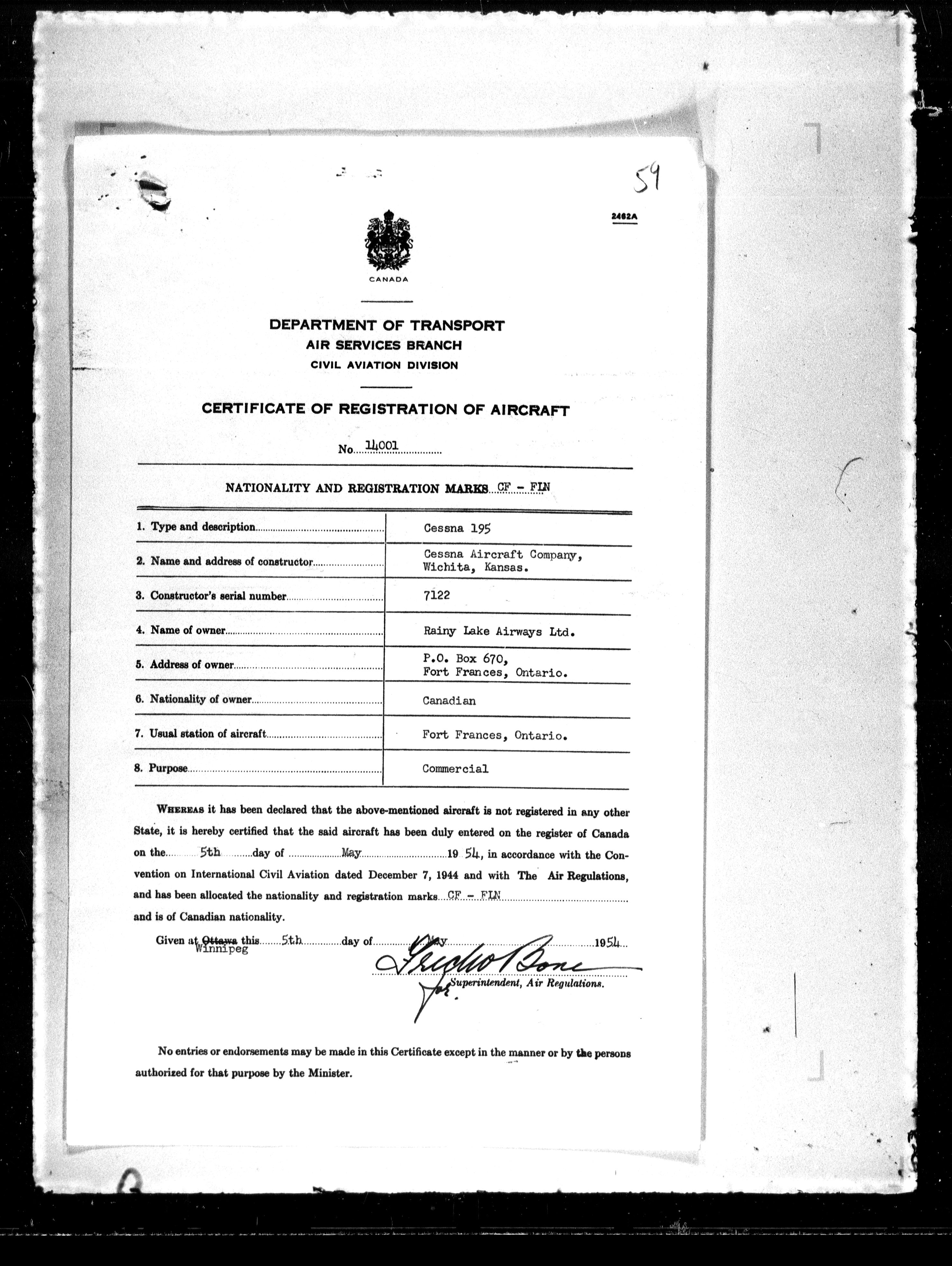 Department of Transport : Civil aircraft registration, inspection and operation files, block 5008, 1920-1986 - 7926