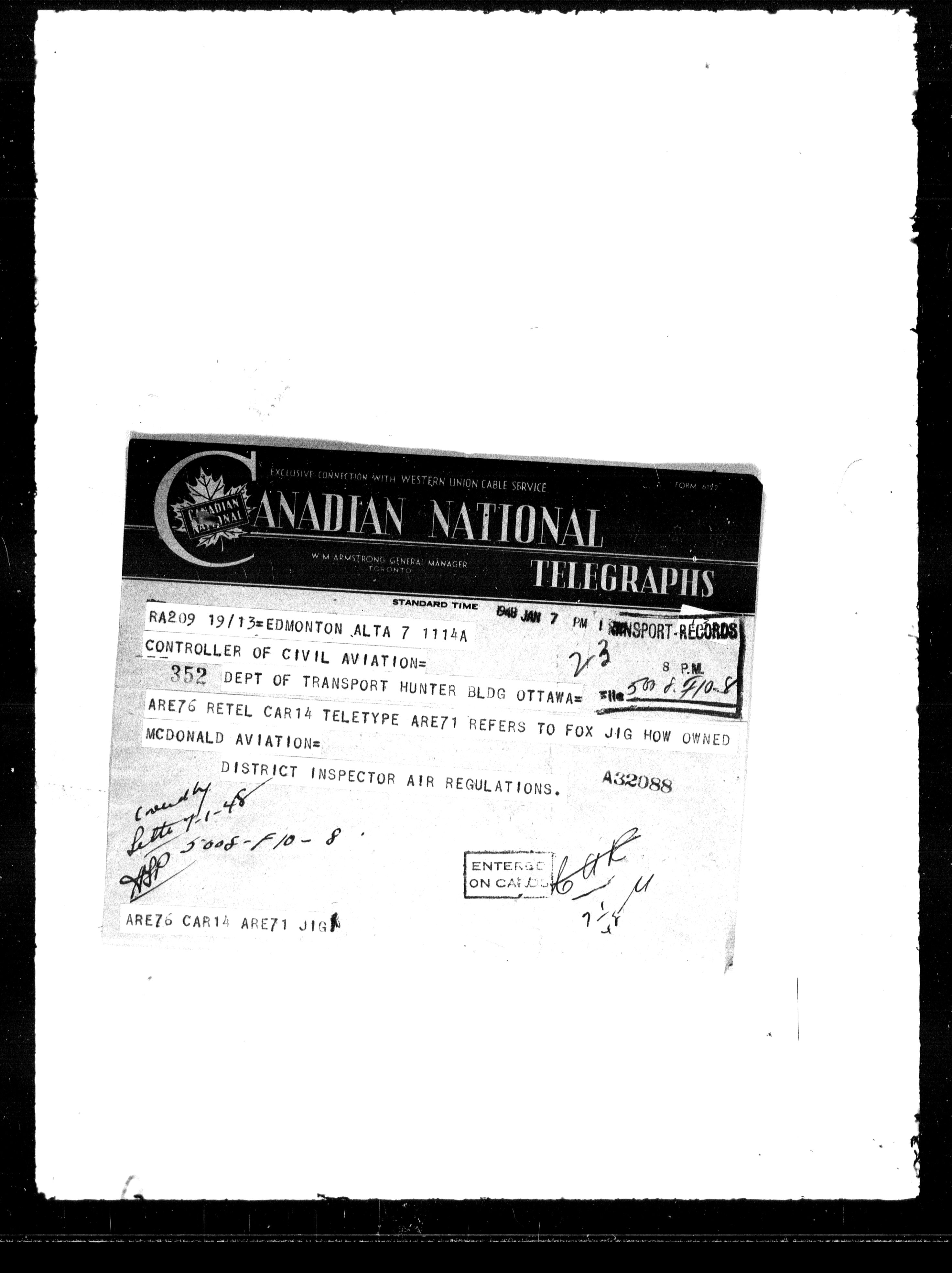 Department of Transport : Civil aircraft registration, inspection and operation files, block 5008, 1920-1986 - 7926