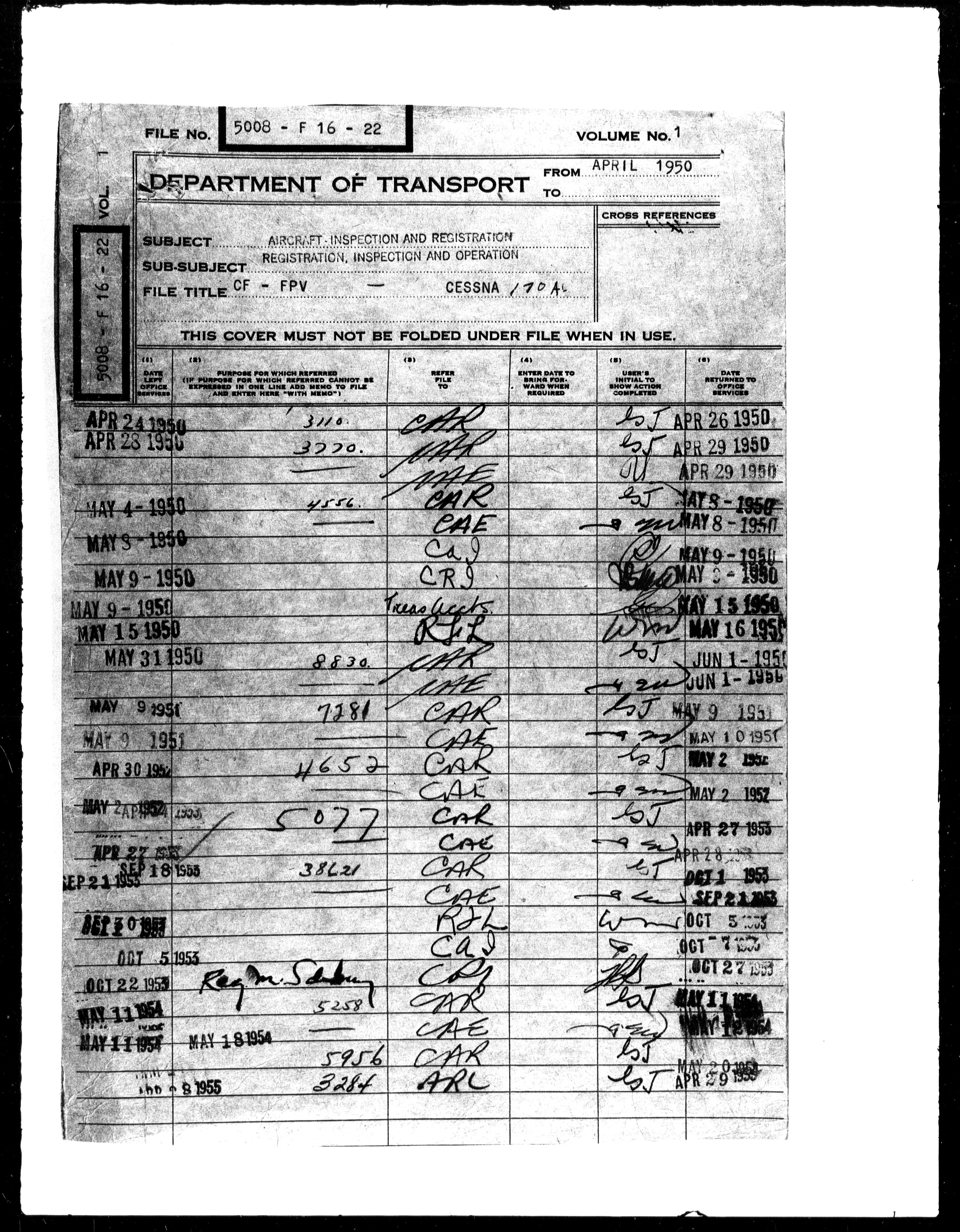Department of Transport : Civil aircraft registration, inspection and operation files, block 5008, 1920-1986 - 7927