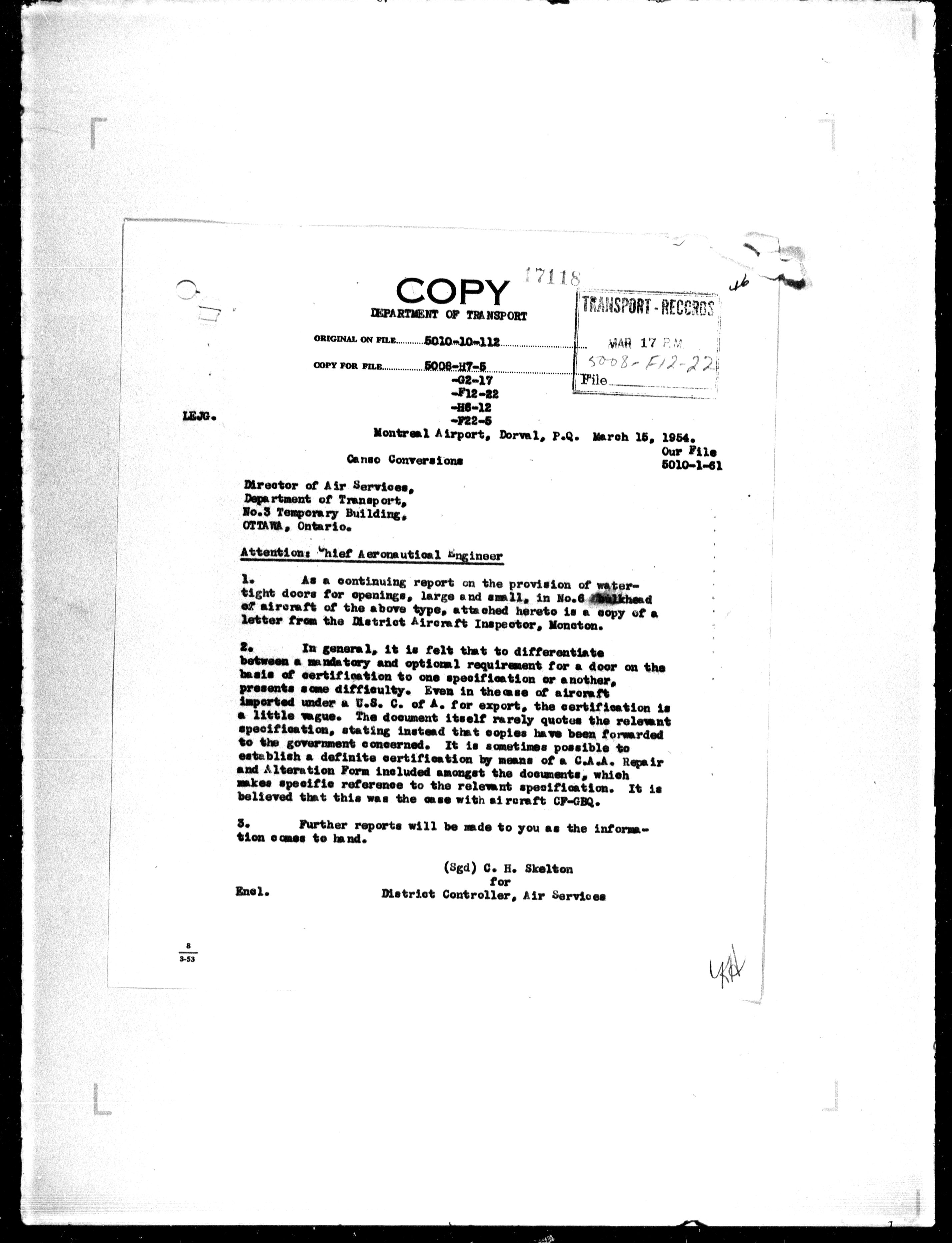 Department of Transport : Civil aircraft registration, inspection and operation files, block 5008, 1920-1986 - 7927