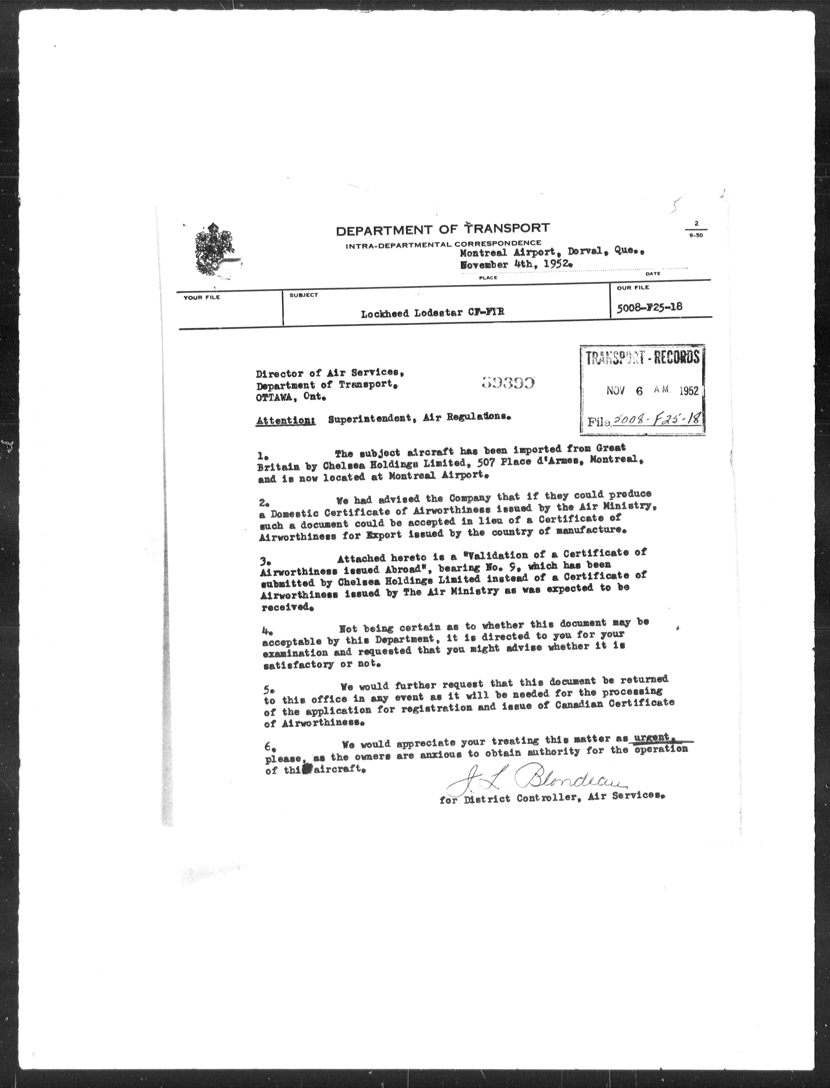 Department of Transport : Civil aircraft registration, inspection and operation files, block 5008, 1920-1986 - 7929