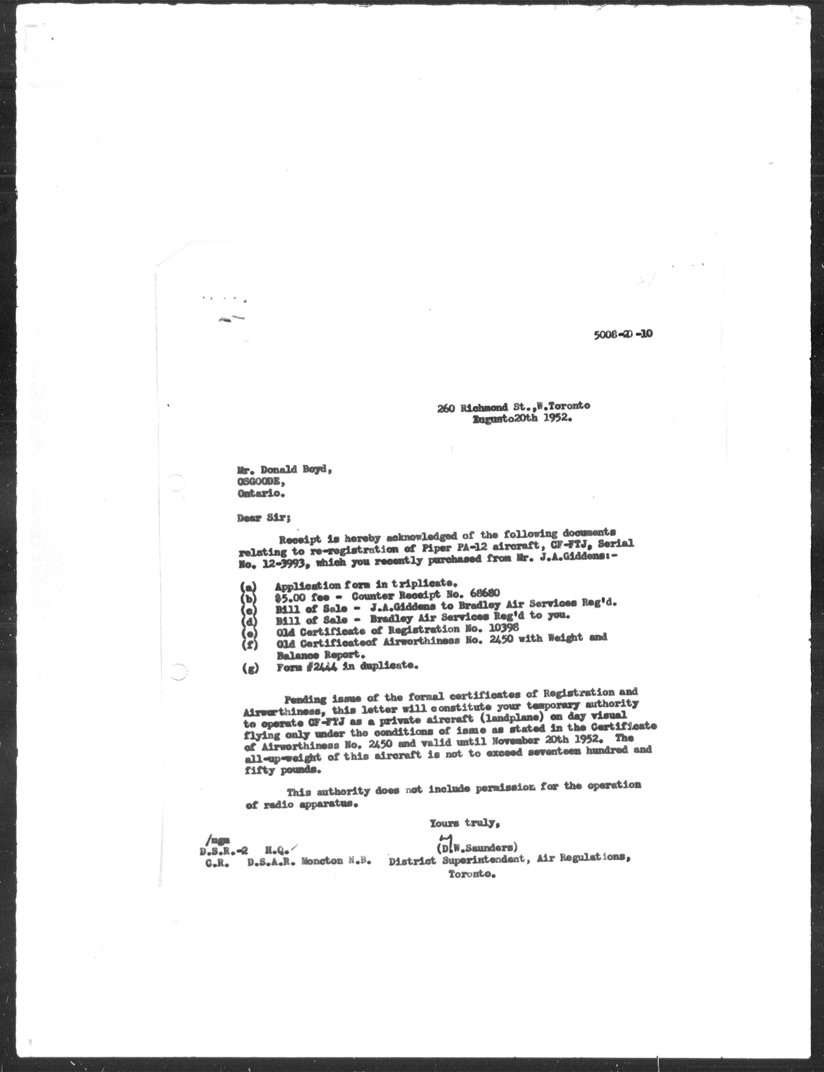 Department of Transport : Civil aircraft registration, inspection and operation files, block 5008, 1920-1986 - 7929