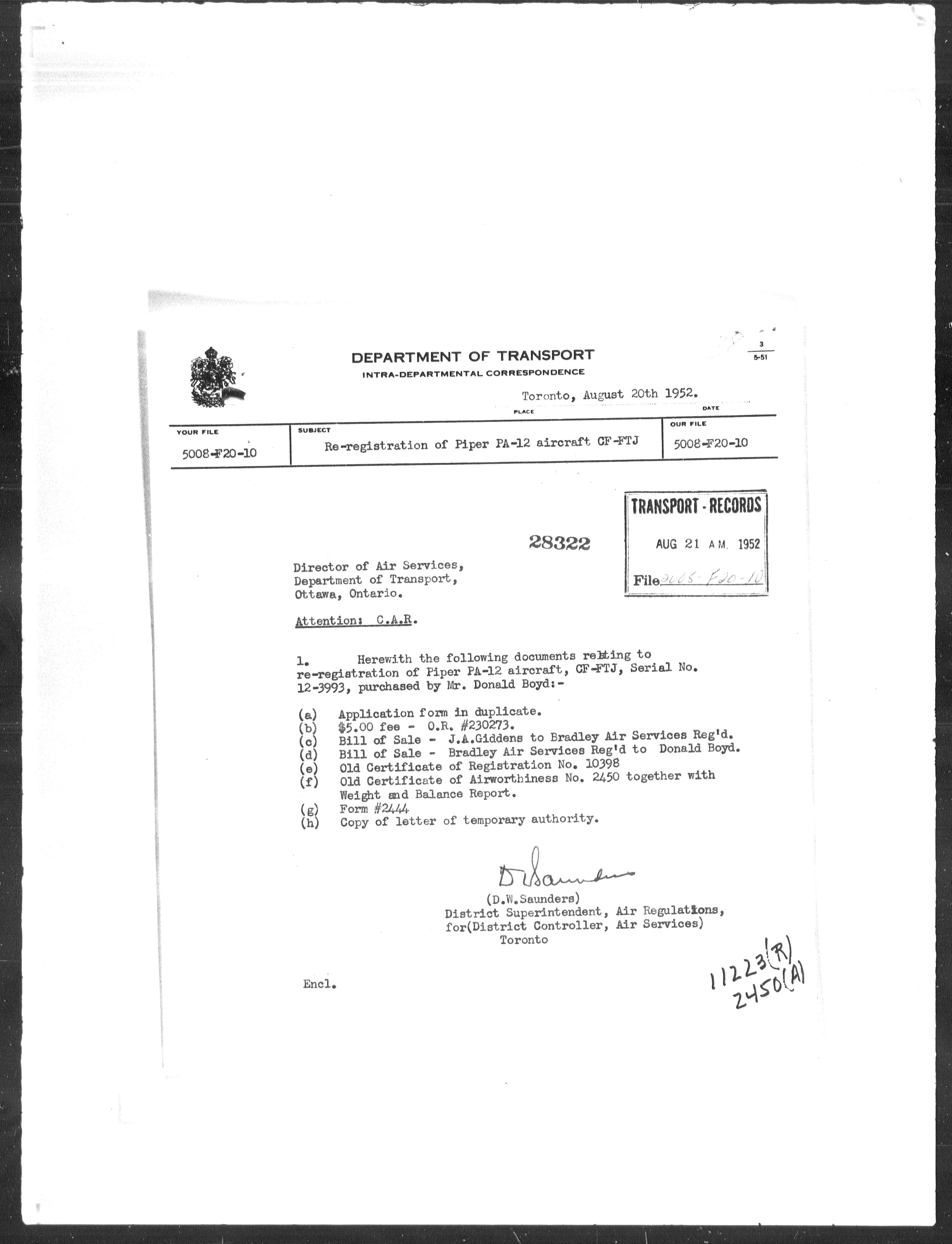 Department of Transport : Civil aircraft registration, inspection and operation files, block 5008, 1920-1986 - 7929
