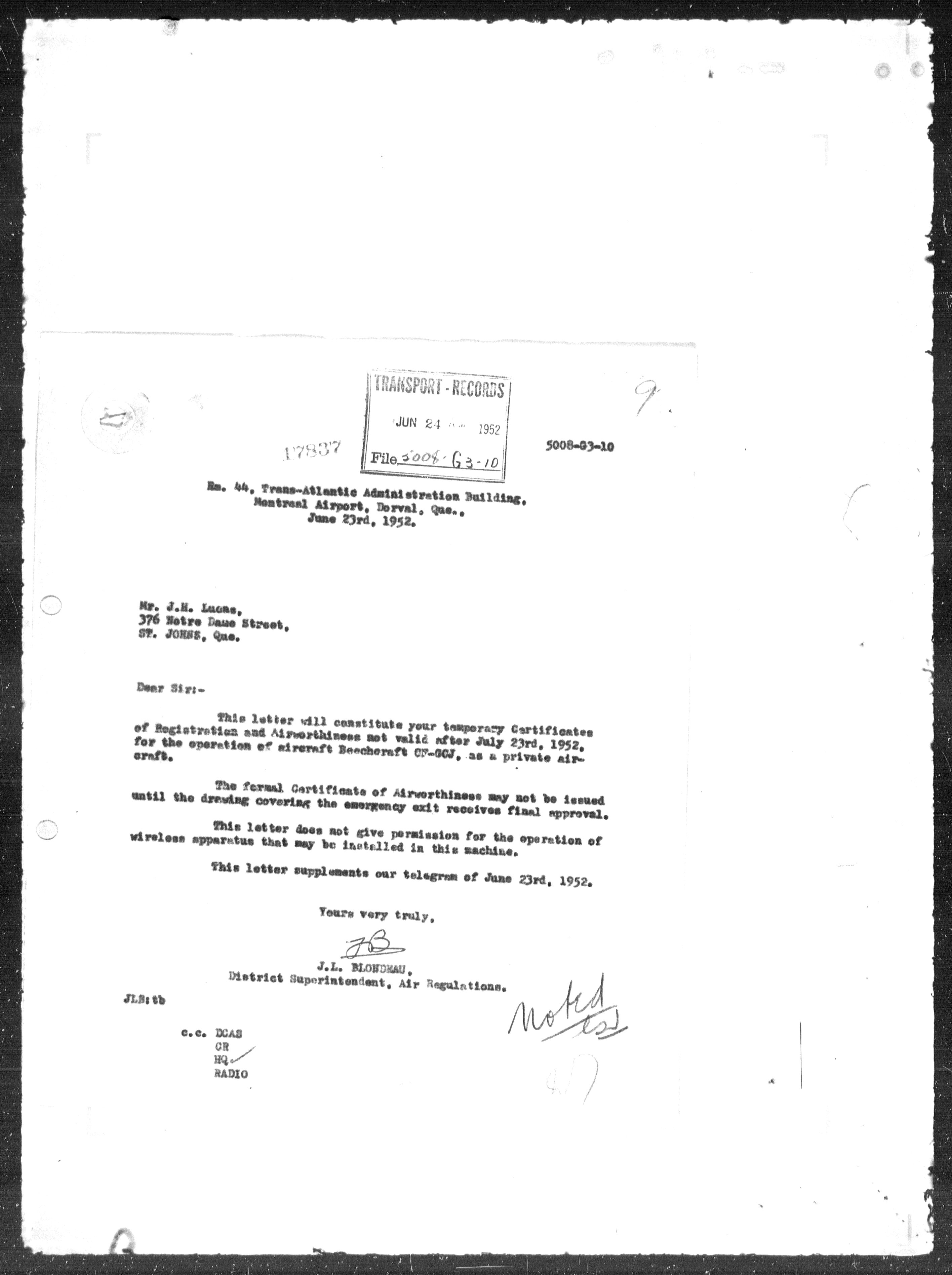 Department of Transport : Civil aircraft registration, inspection and operation files, block 5008, 1920-1986 - 7931
