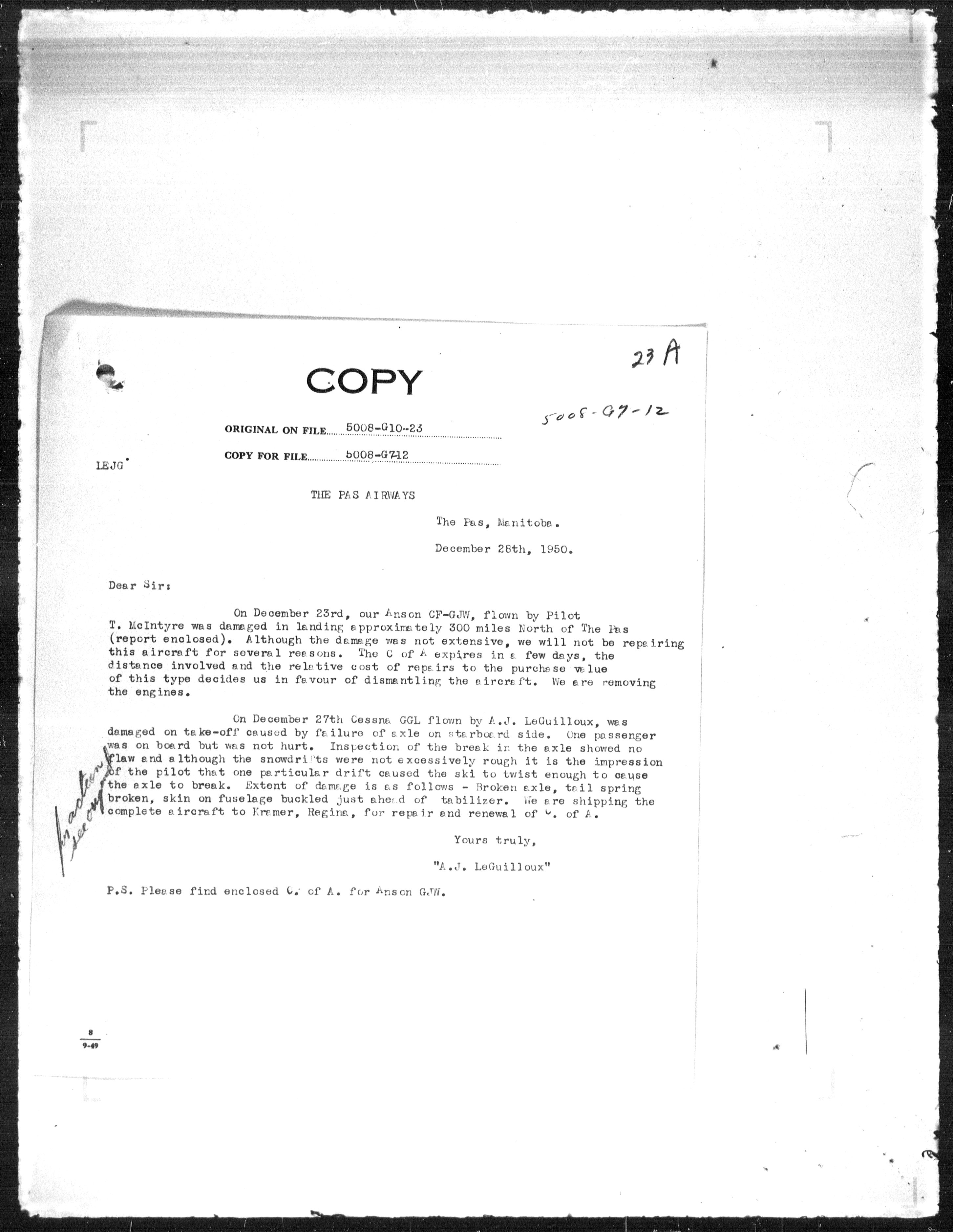 Department of Transport : Civil aircraft registration, inspection and operation files, block 5008, 1920-1986 - 7932