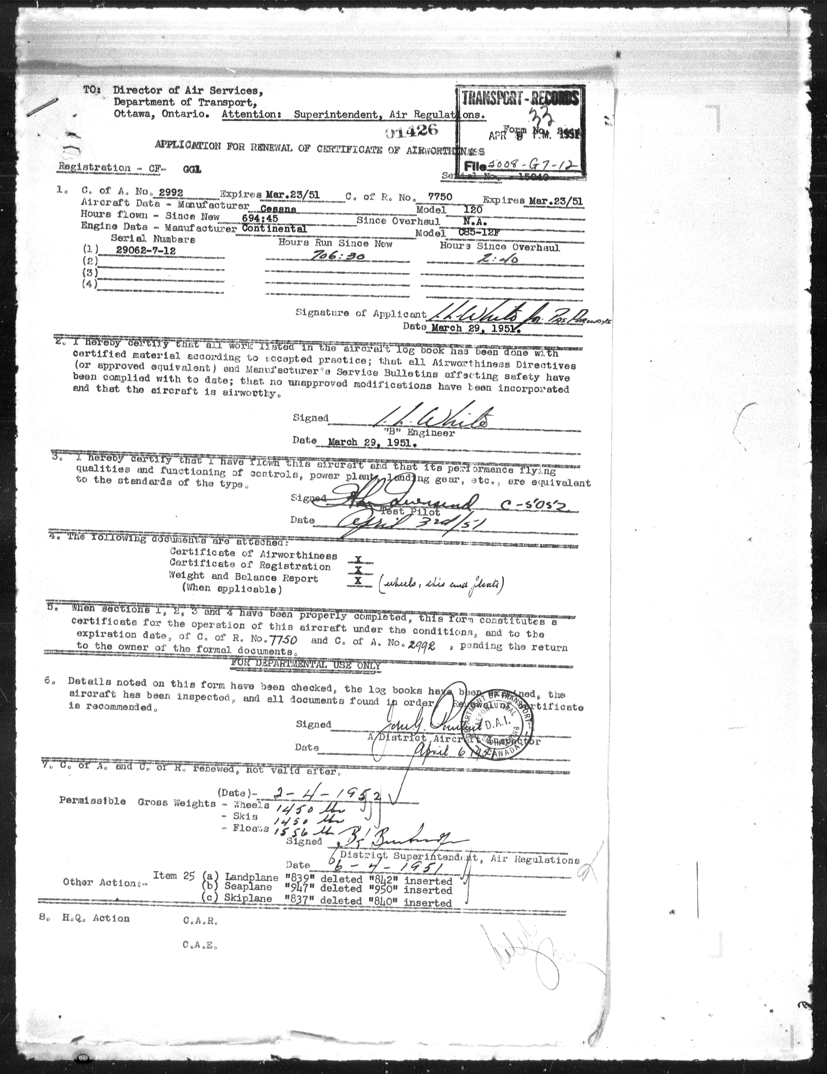 Department of Transport : Civil aircraft registration, inspection and operation files, block 5008, 1920-1986 - 7932