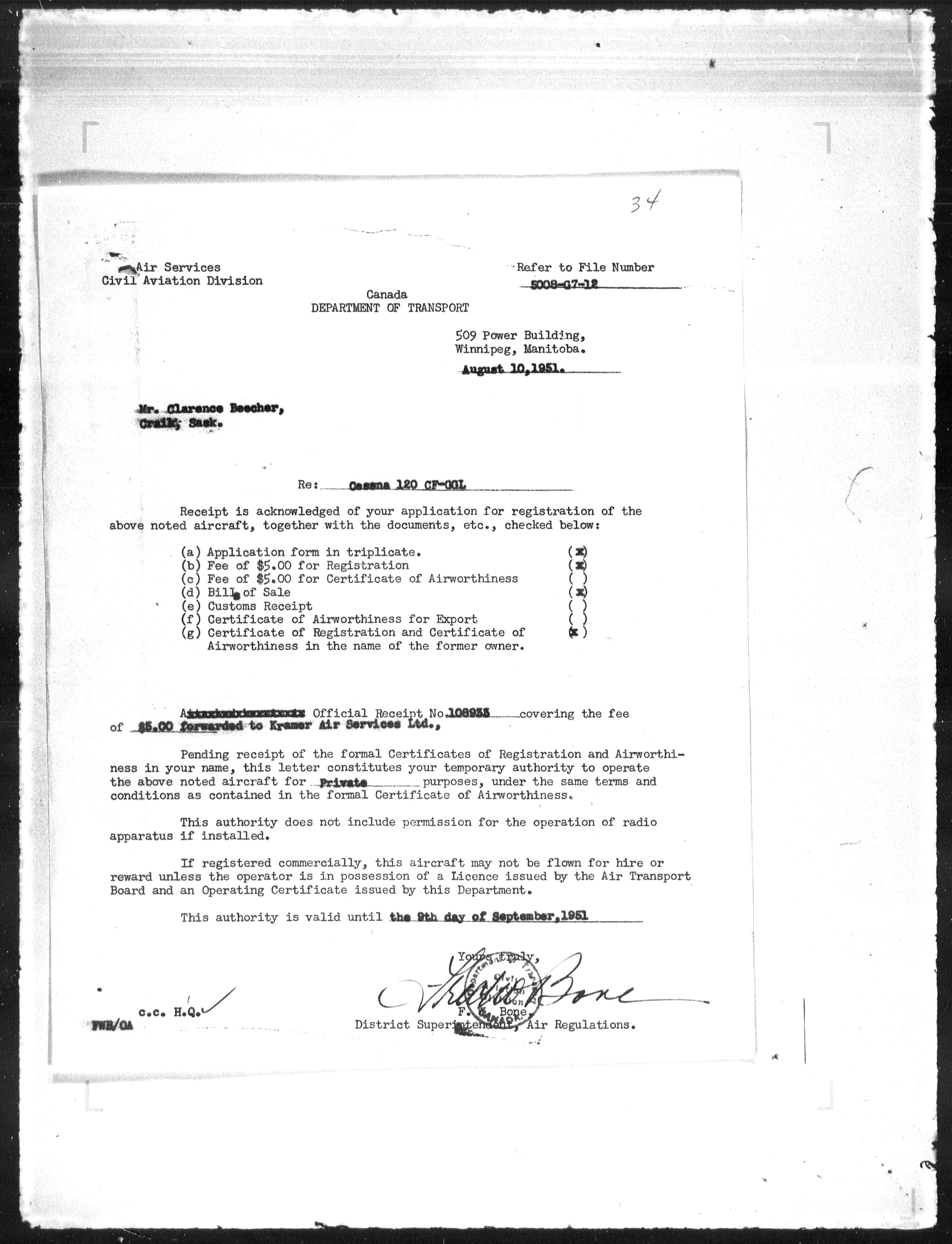 Department of Transport : Civil aircraft registration, inspection and operation files, block 5008, 1920-1986 - 7932