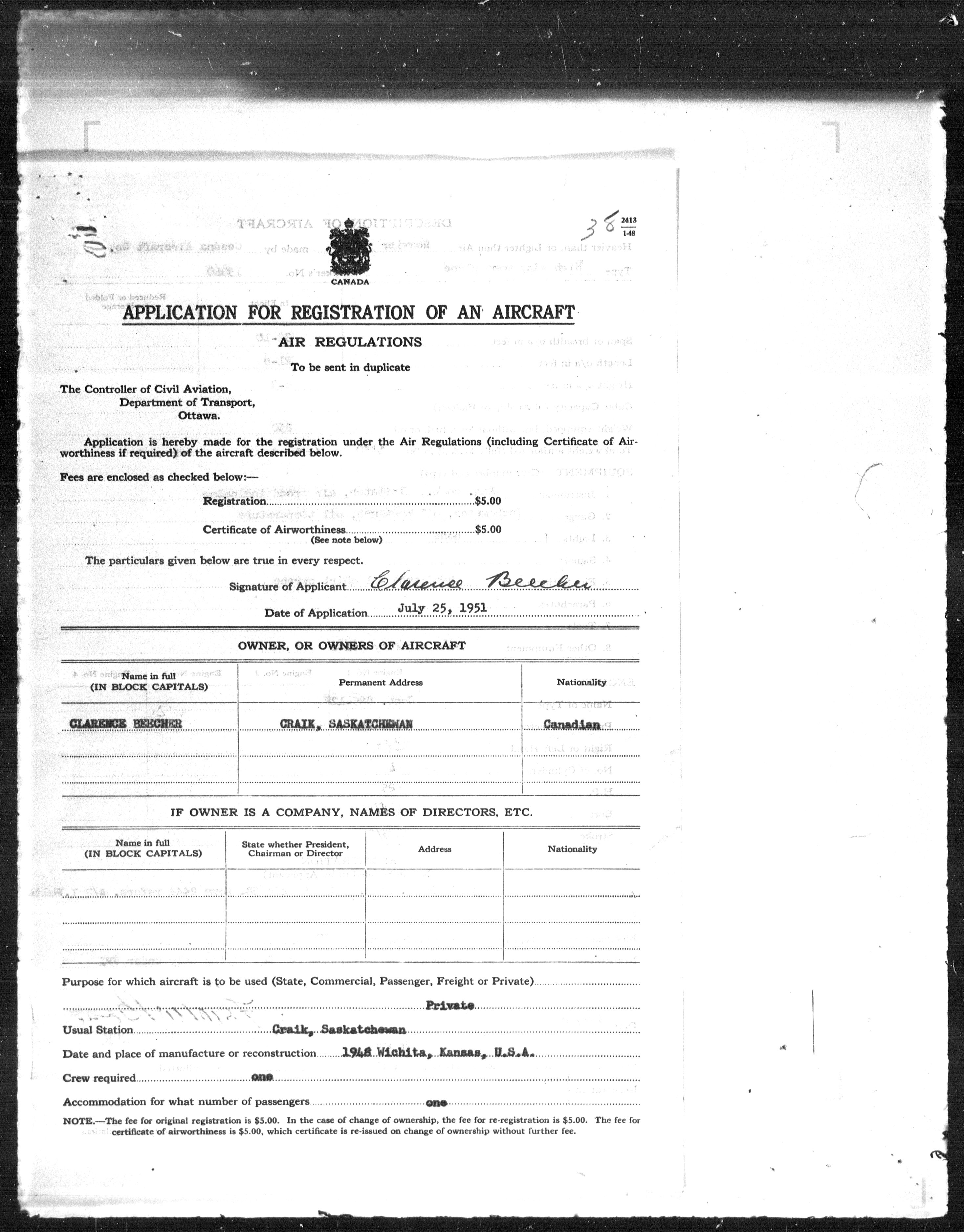Department of Transport : Civil aircraft registration, inspection and operation files, 1920-1986 : T-7932