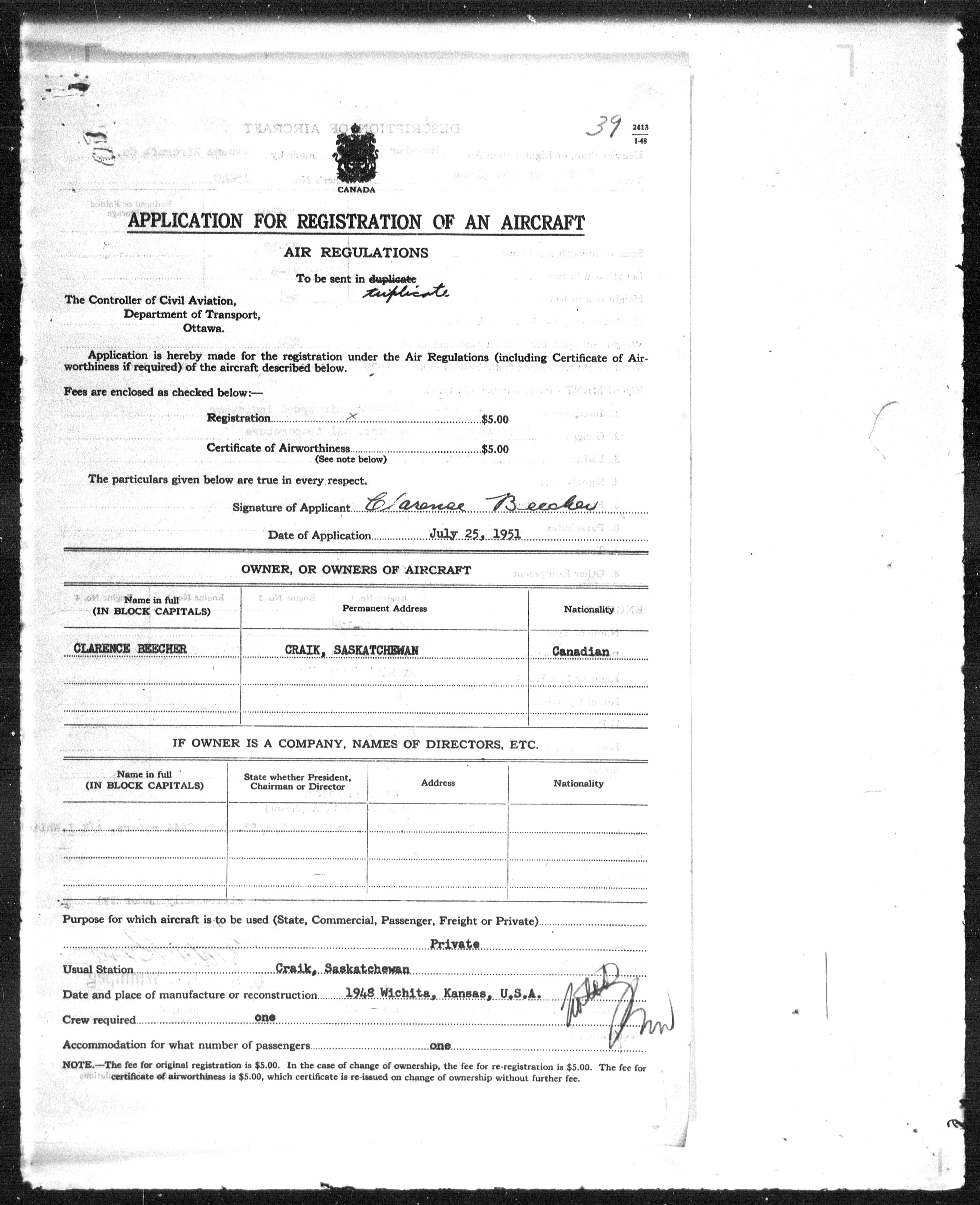 Department of Transport : Civil aircraft registration, inspection and operation files, 1920-1986 : T-7932