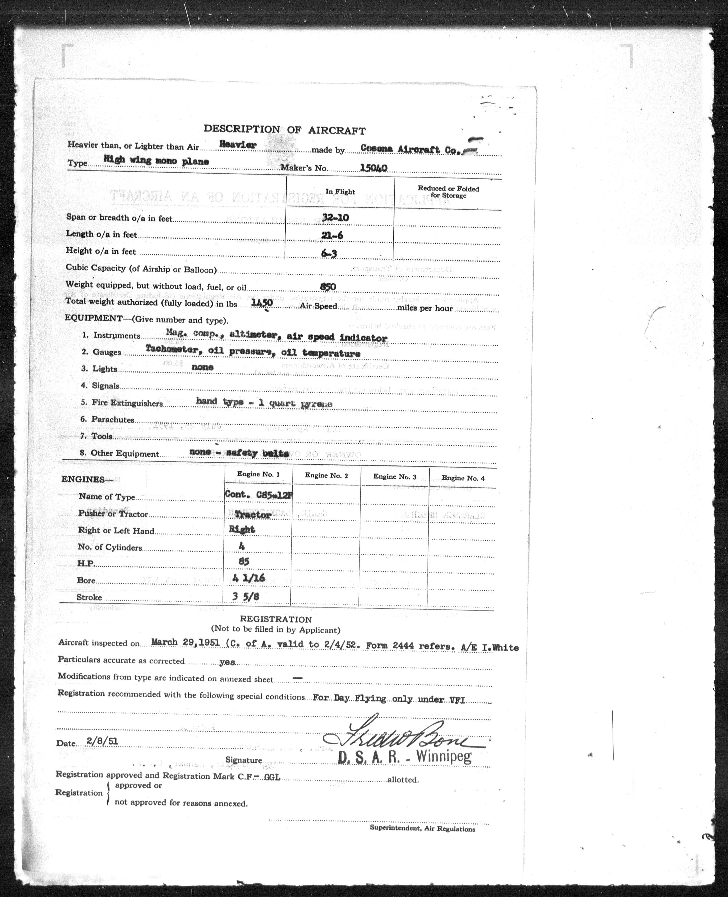 Department of Transport : Civil aircraft registration, inspection and operation files, block 5008, 1920-1986 - 7932