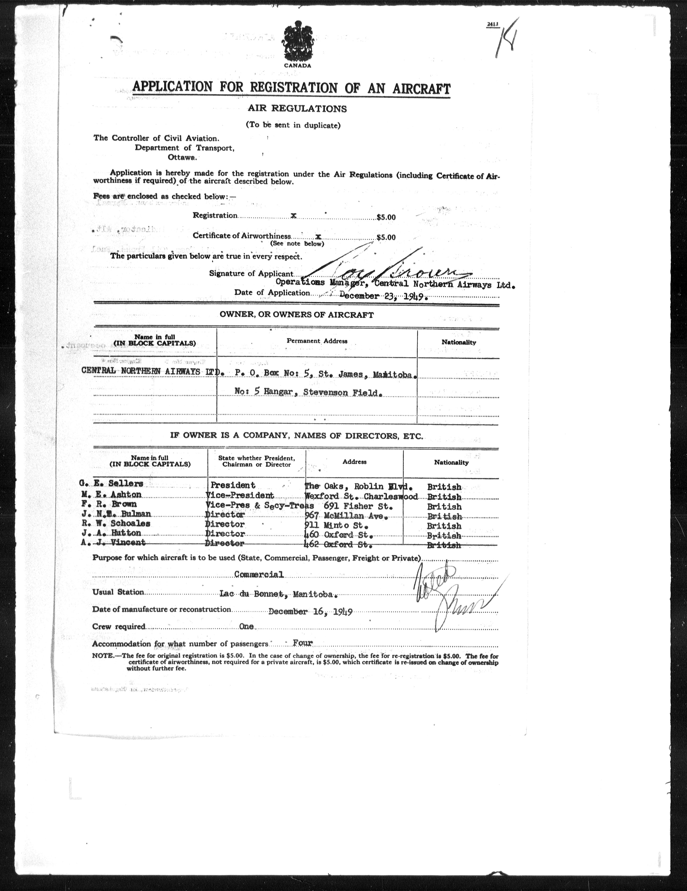 Department of Transport : Civil aircraft registration, inspection and operation files, block 5008, 1920-1986 - 7933