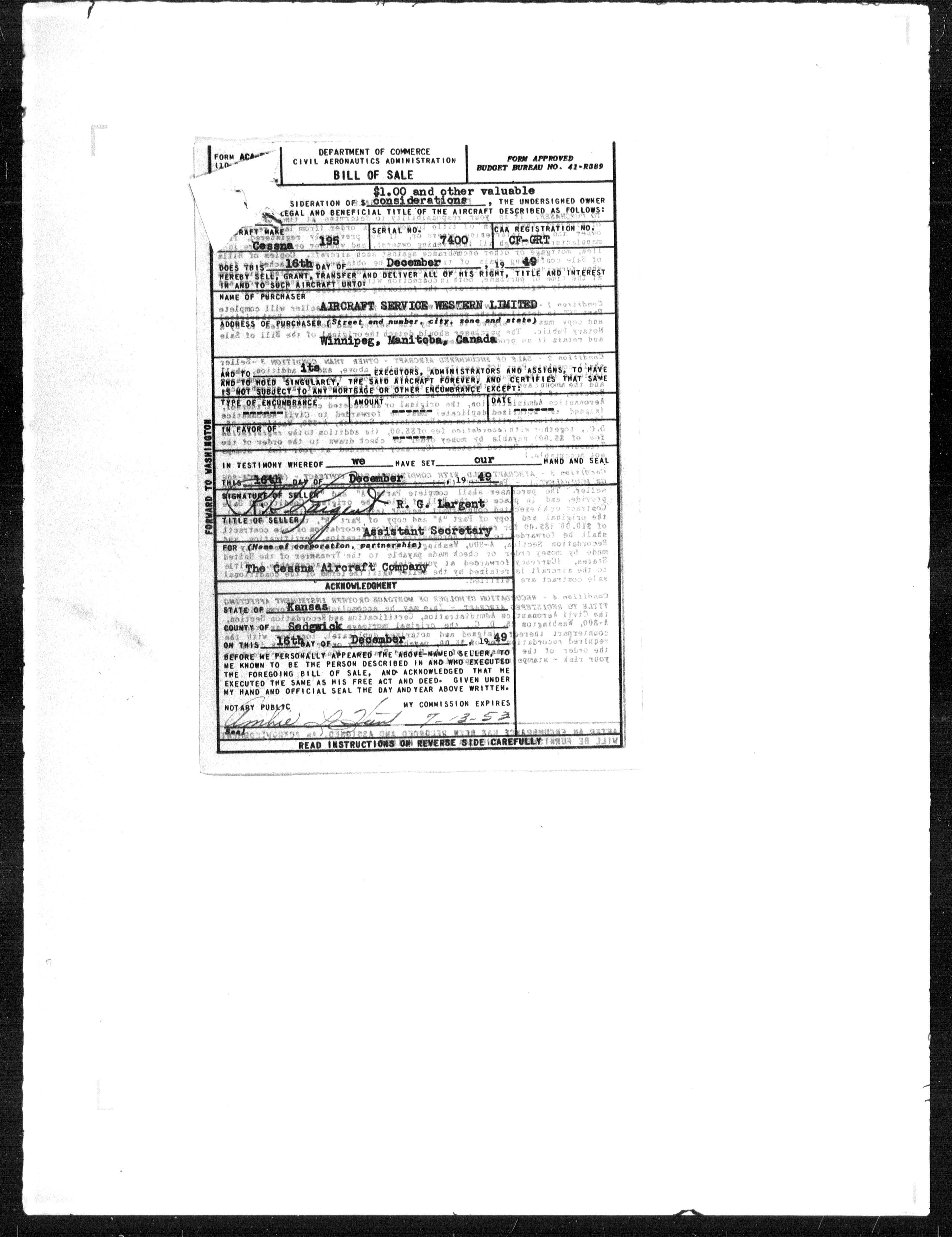 Department of Transport : Civil aircraft registration, inspection and operation files, block 5008, 1920-1986 - 7933
