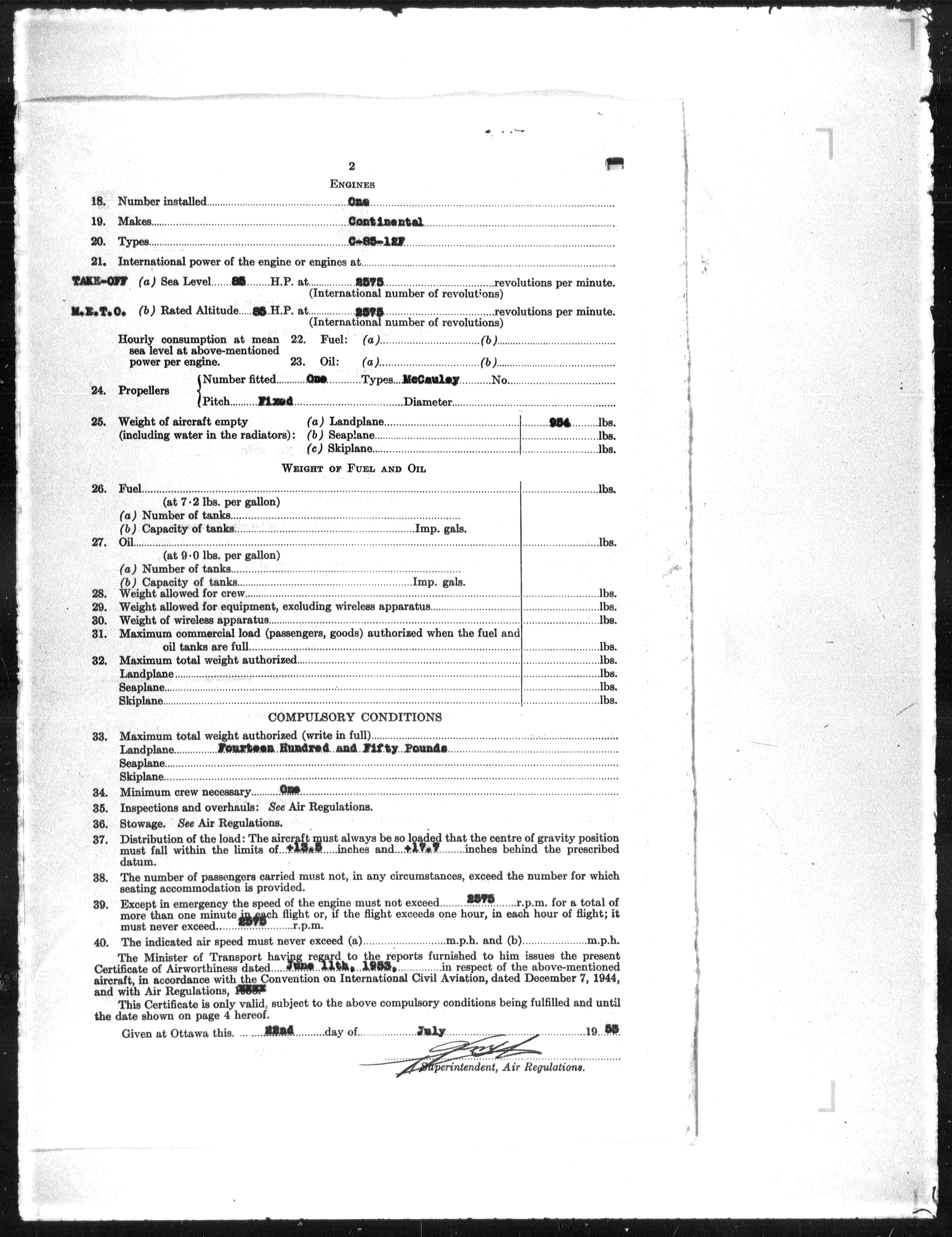 Department of Transport : Civil aircraft registration, inspection and operation files, 1920-1986 : T-7935