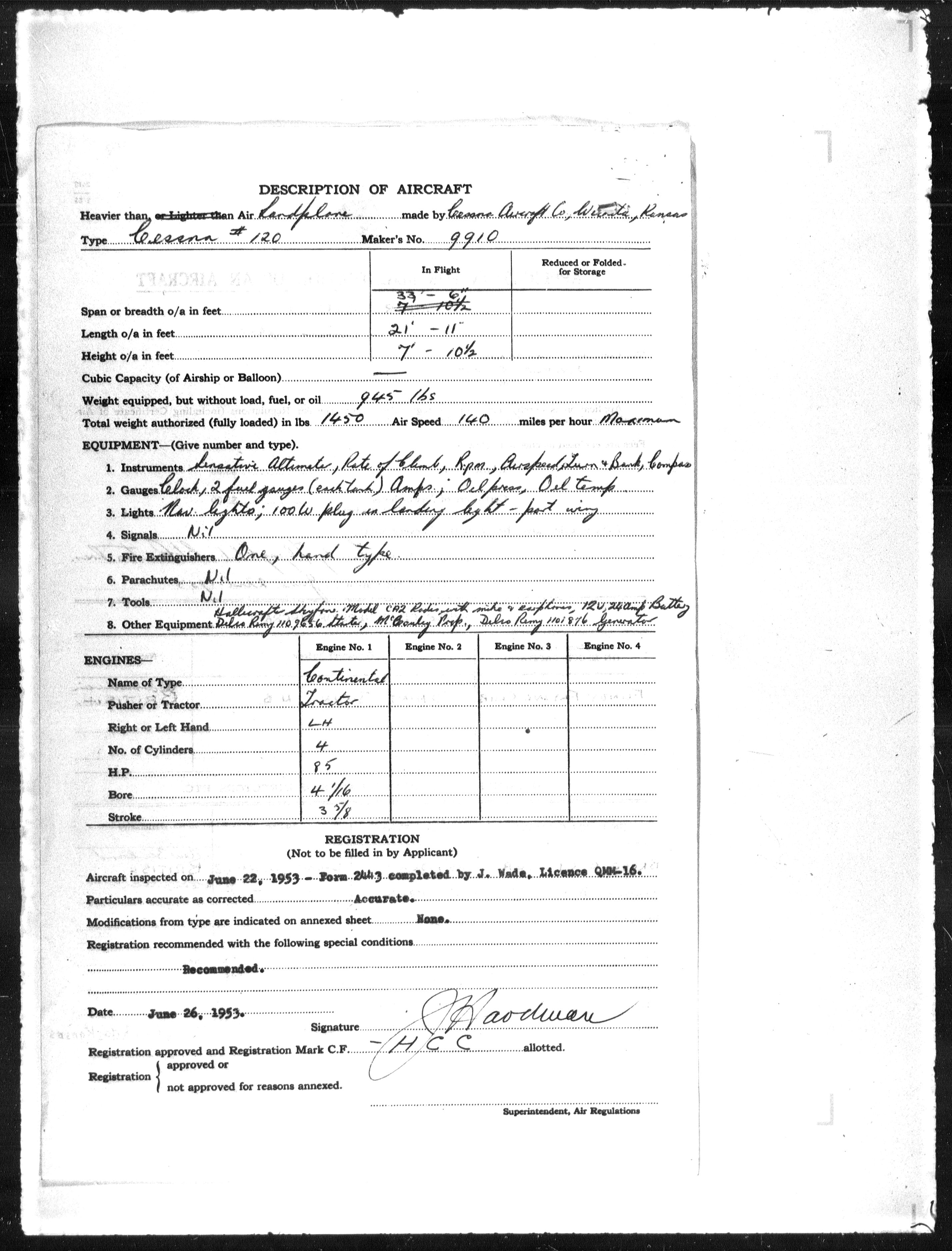 Department of Transport : Civil aircraft registration, inspection and operation files, block 5008, 1920-1986 - 7935