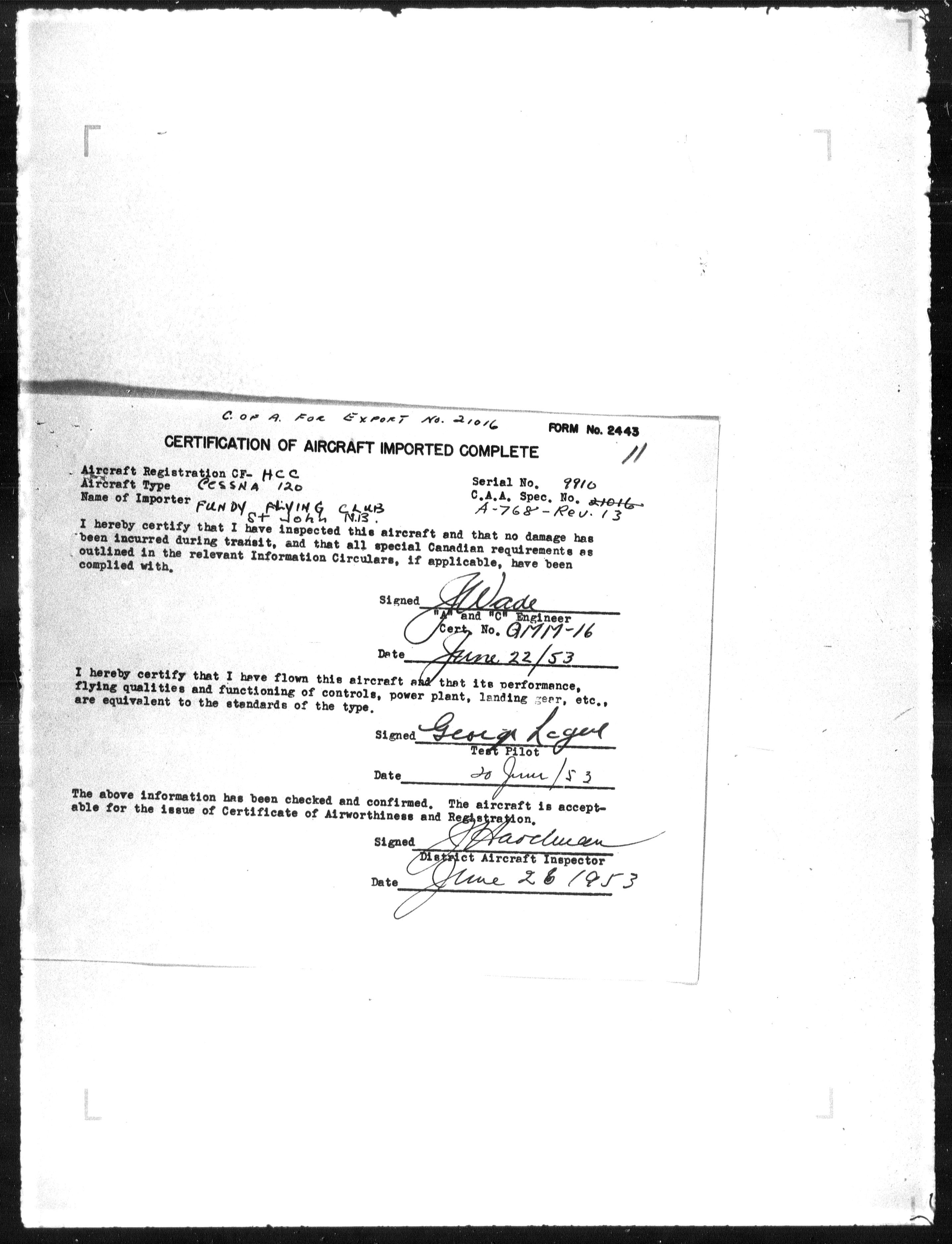 Department of Transport : Civil aircraft registration, inspection and operation files, block 5008, 1920-1986 - 7935
