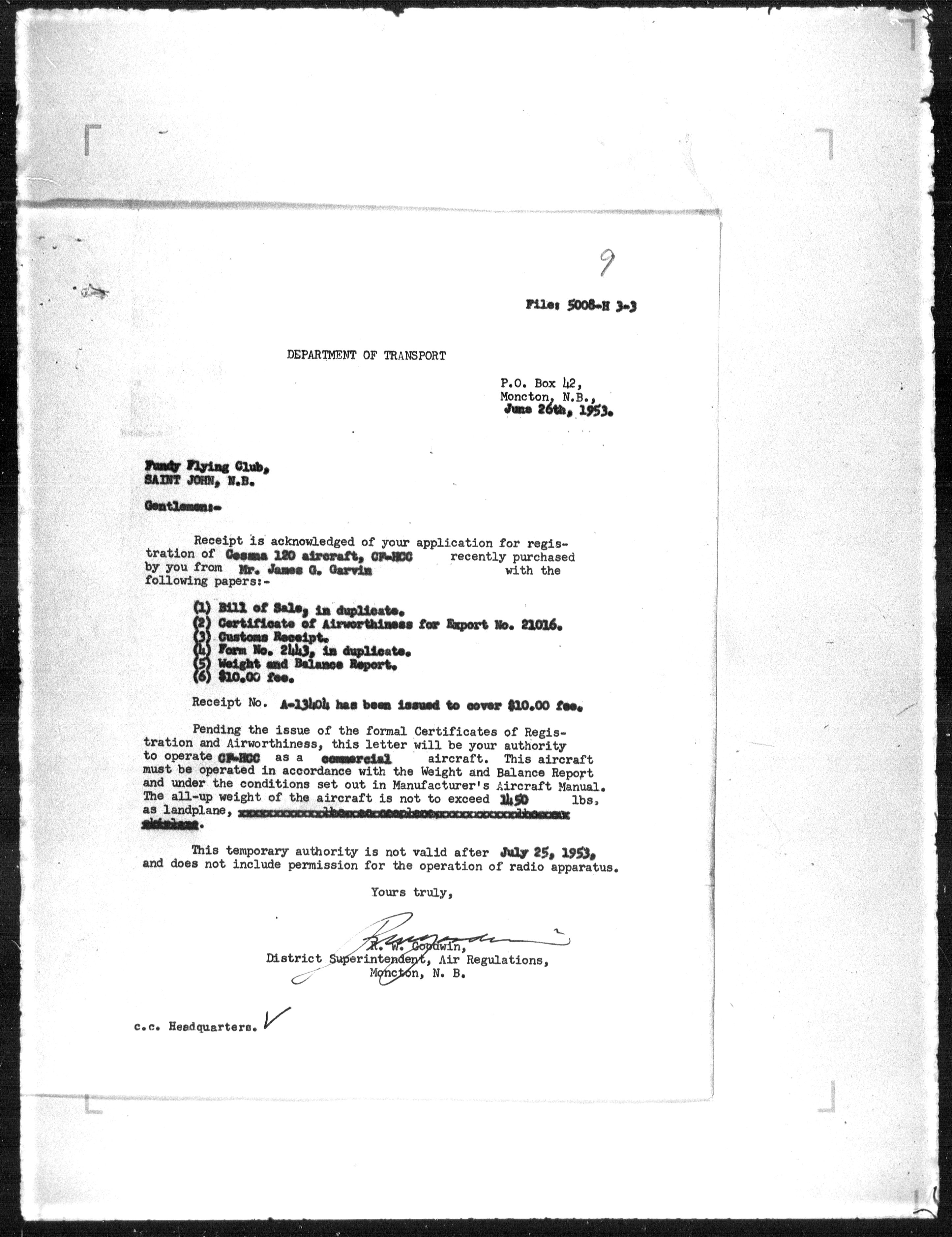Department of Transport : Civil aircraft registration, inspection and operation files, block 5008, 1920-1986 - 7935