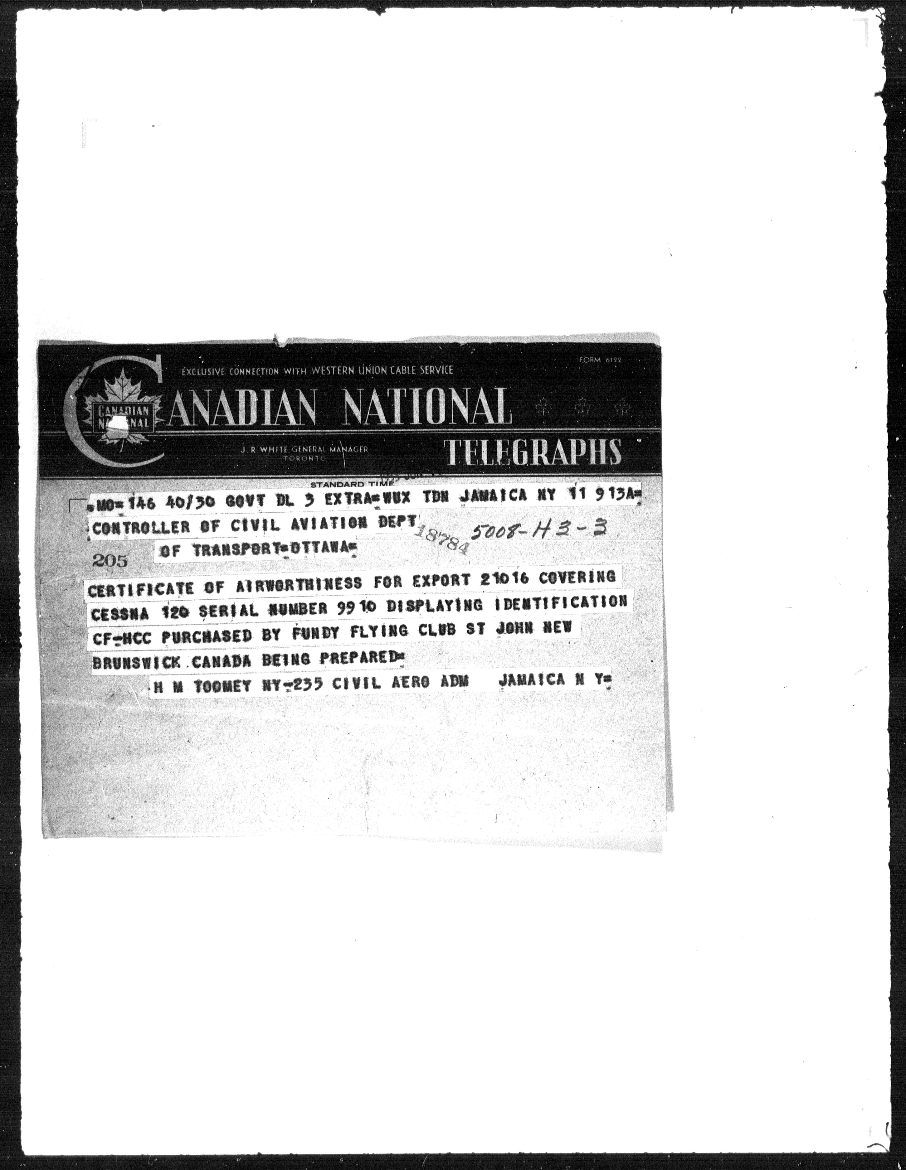 Department of Transport : Civil aircraft registration, inspection and operation files, block 5008, 1920-1986 - 7935
