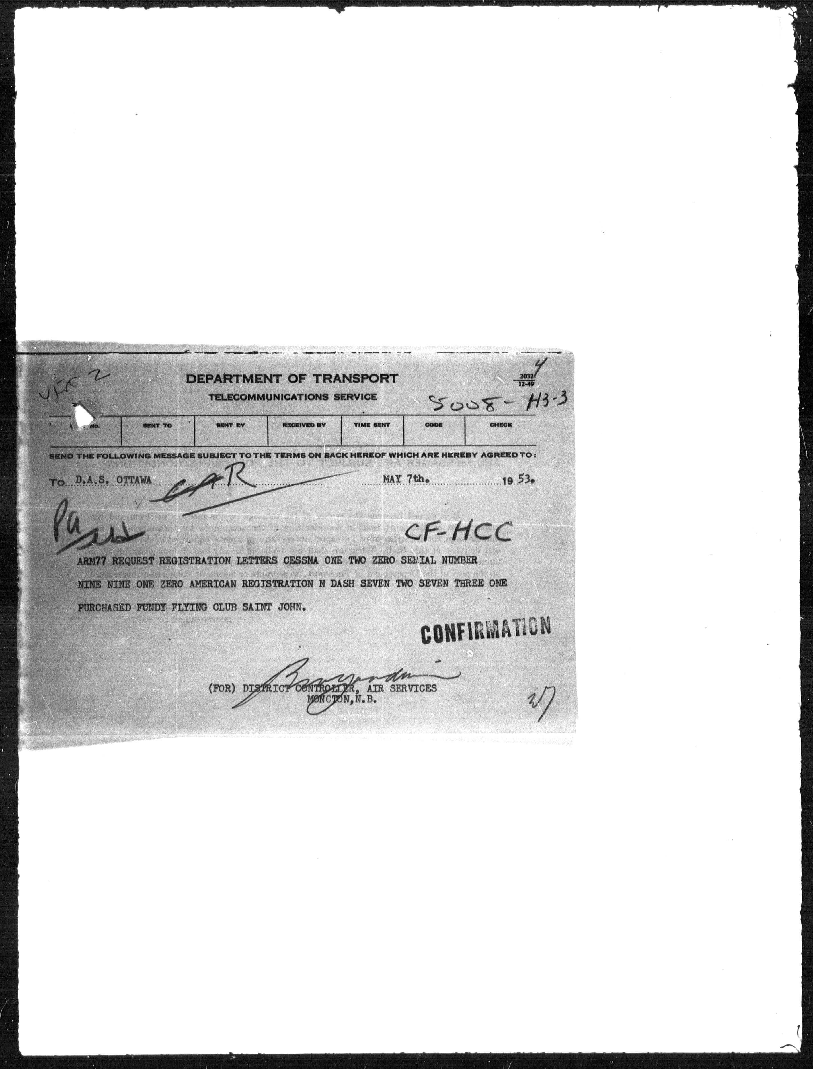 Department of Transport : Civil aircraft registration, inspection and operation files, block 5008, 1920-1986 - 7935