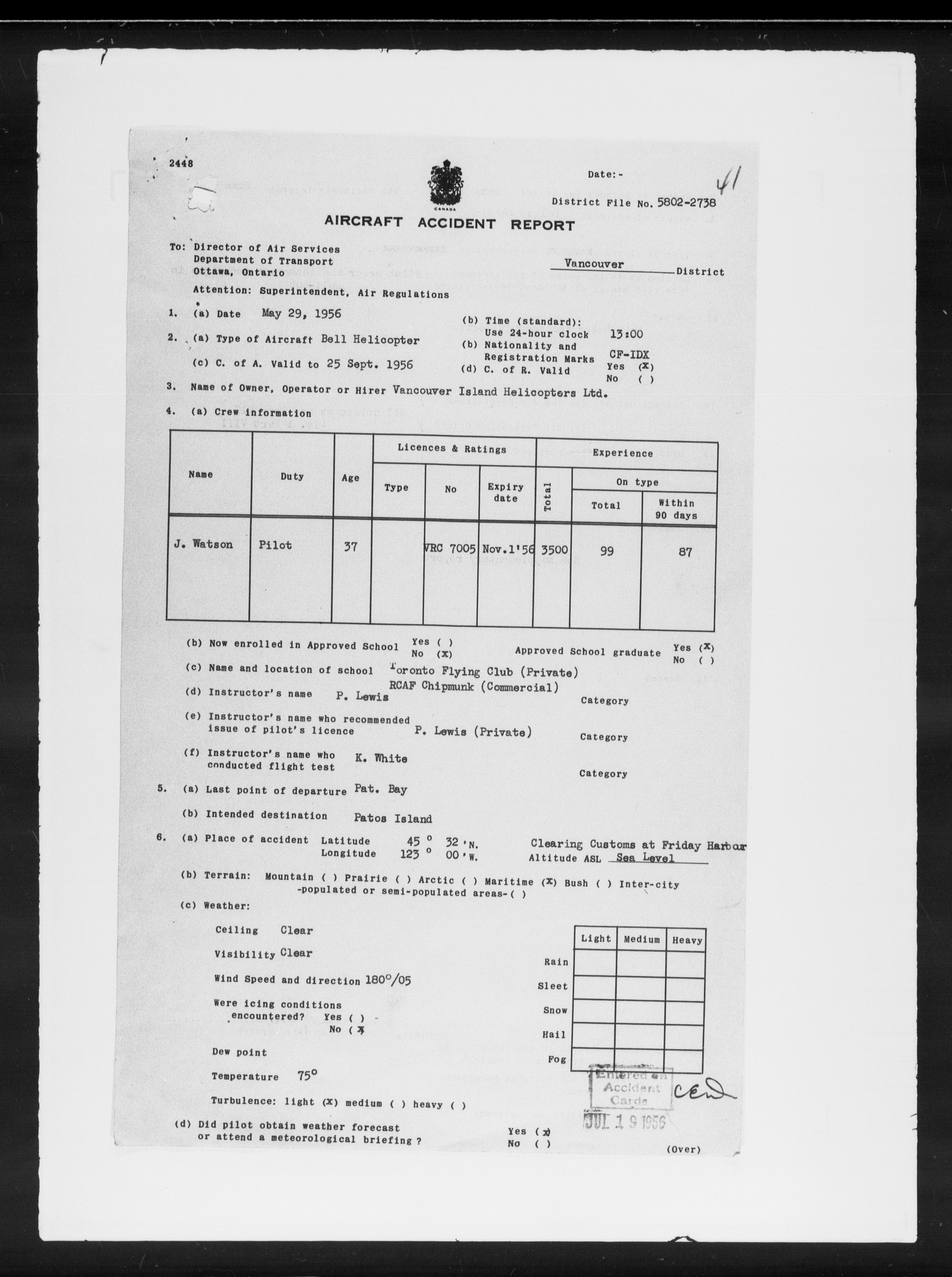 Department of Transport : Civil aircraft registration, inspection and operation files, block 5008, 1920-1986 - 7938