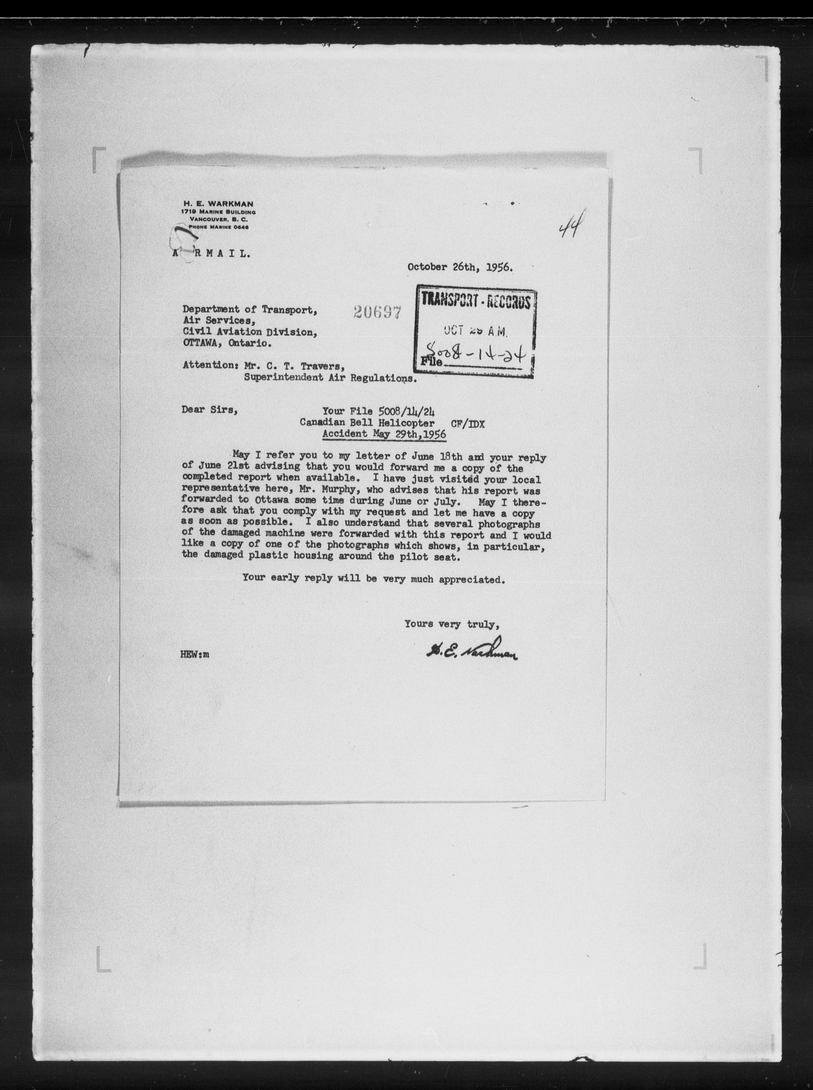 Department of Transport : Civil aircraft registration, inspection and operation files, 1920-1986 : T-7938