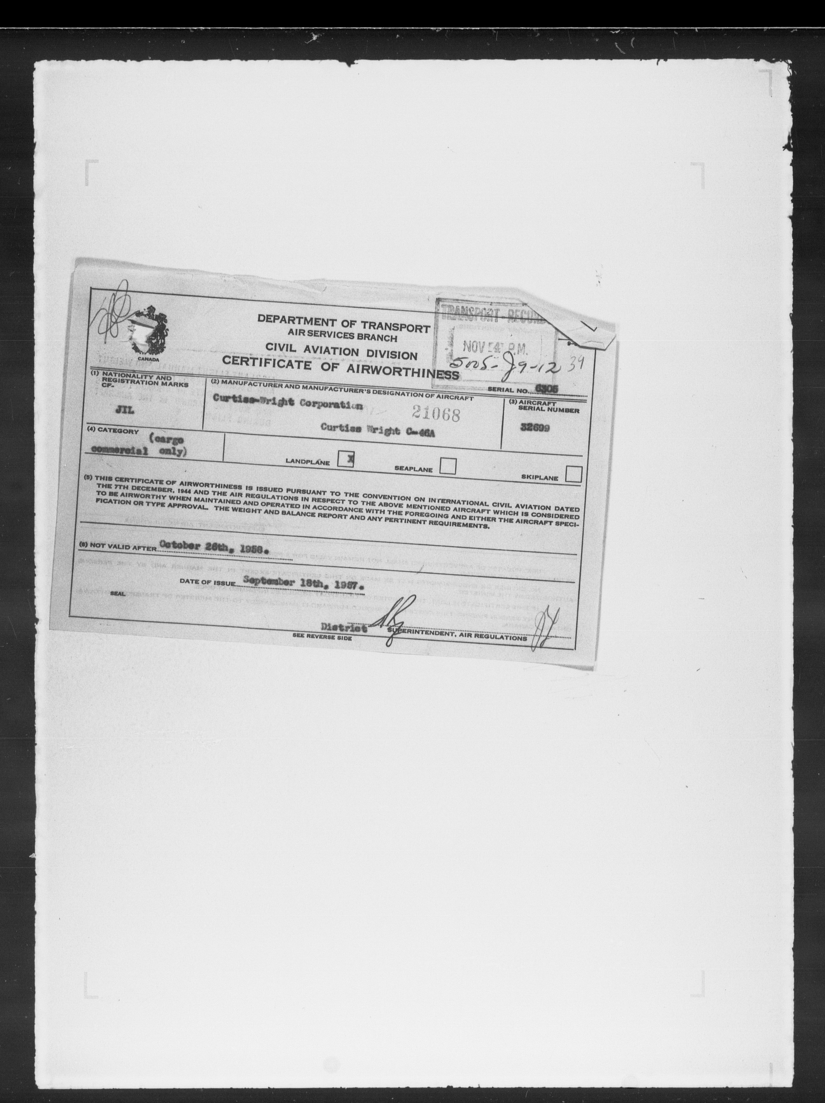 Department of Transport : Civil aircraft registration, inspection and operation files, block 5008, 1920-1986 - 7940