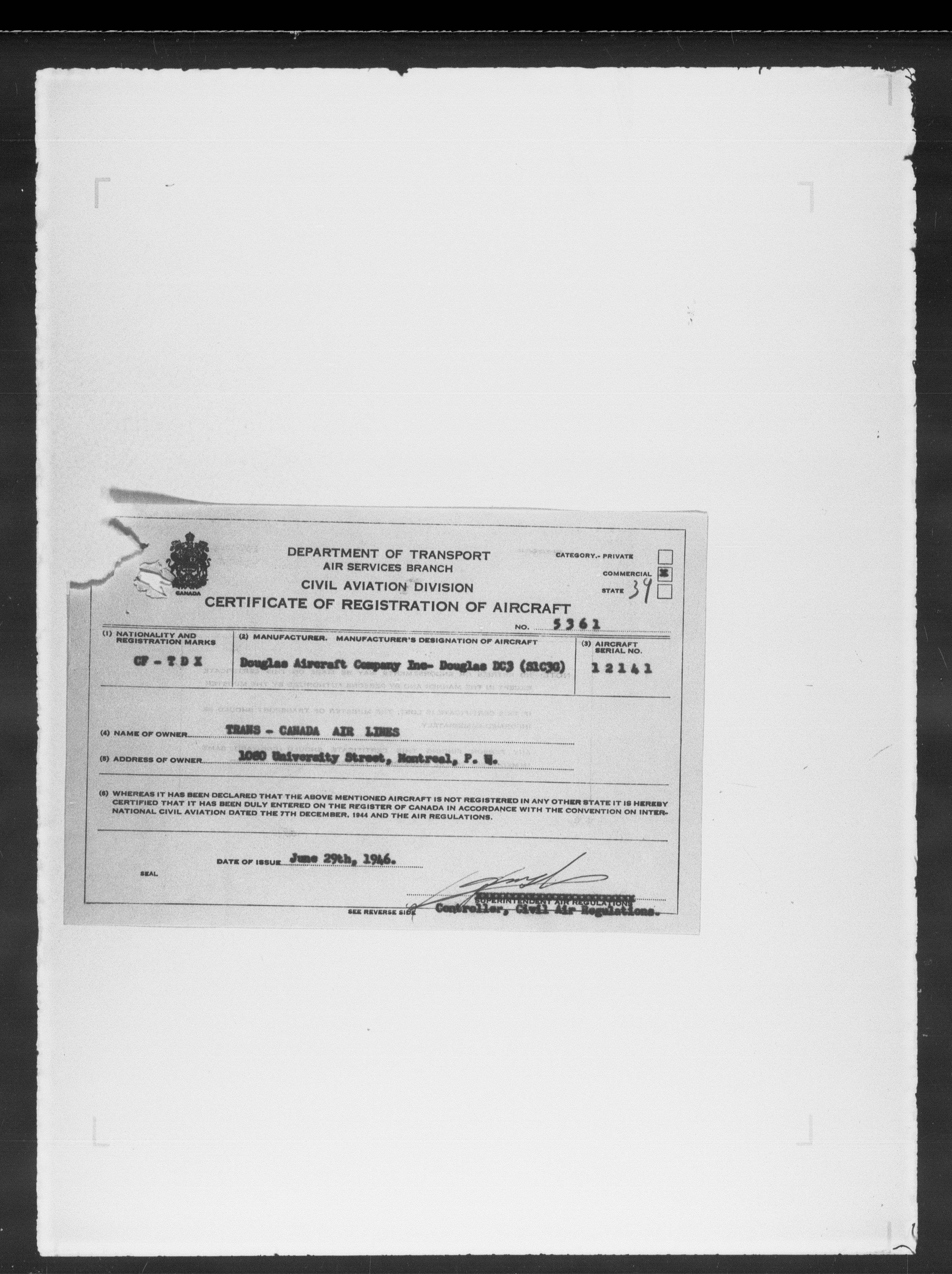 Department of Transport : Civil aircraft registration, inspection and operation files, 1920-1986 : T-7942