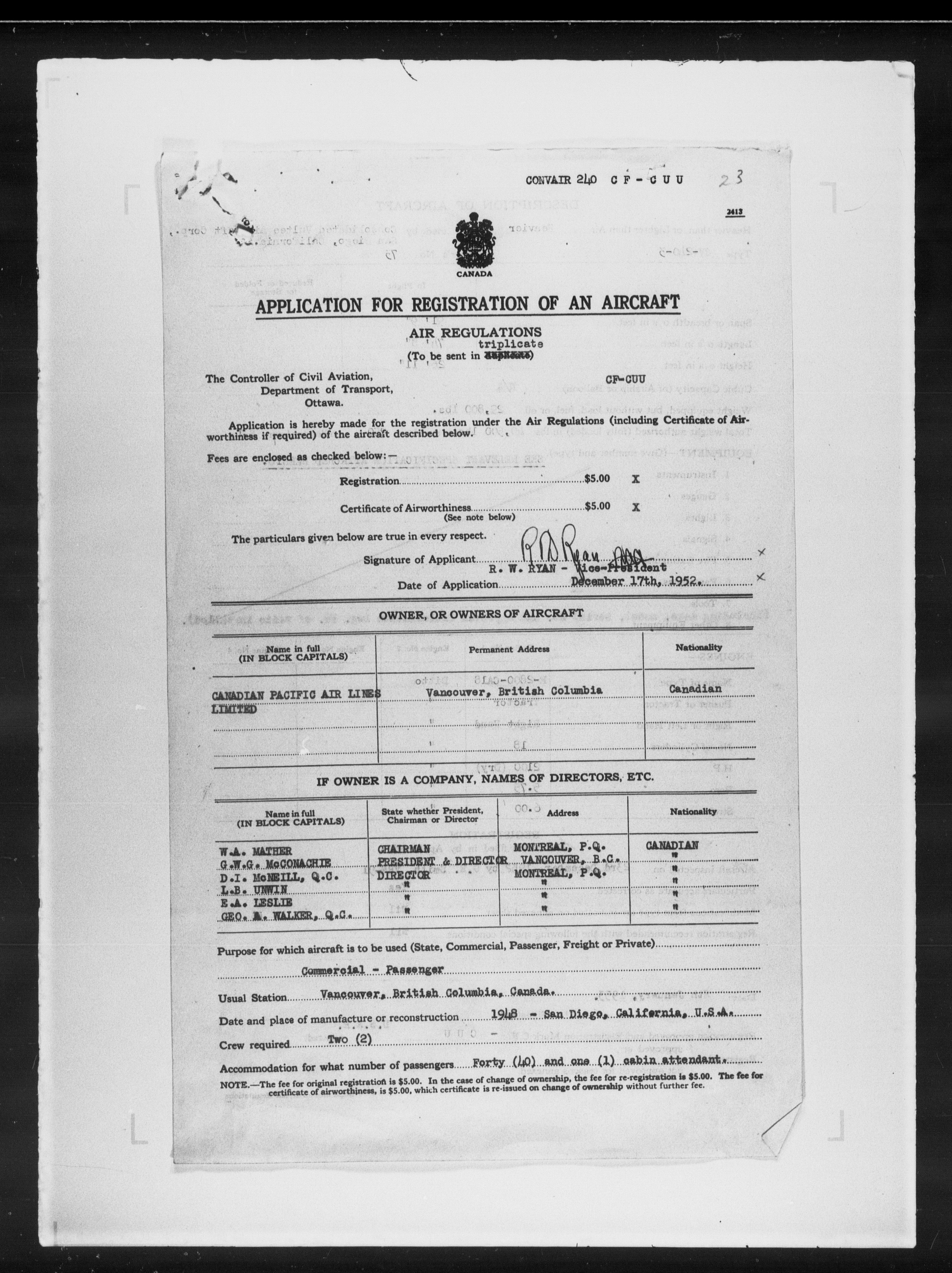 Department of Transport : Civil aircraft registration, inspection and operation files, block 5008, 1920-1986 - 7944
