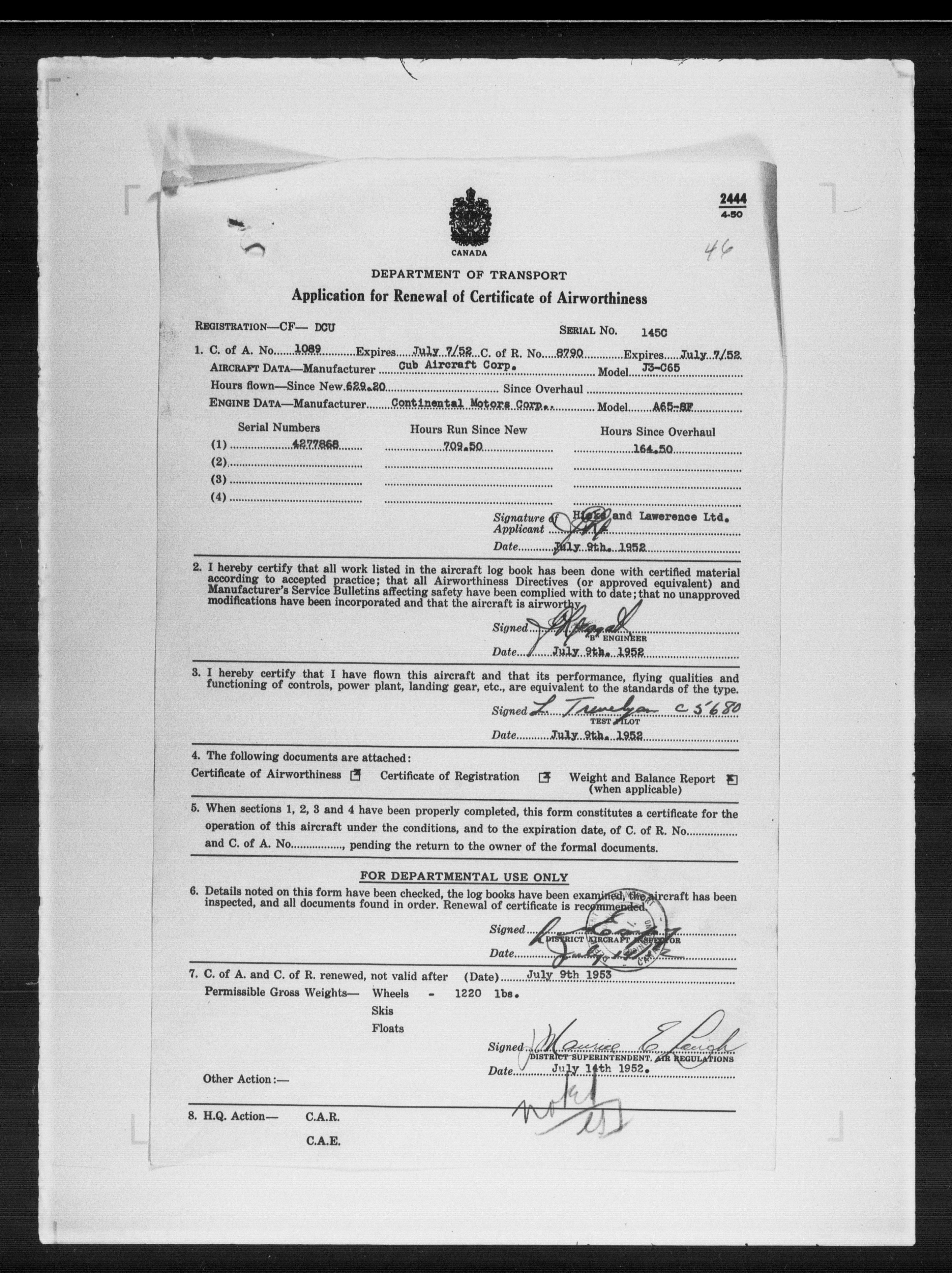 Department of Transport : Civil aircraft registration, inspection and operation files, block 5008, 1920-1986 - 7944