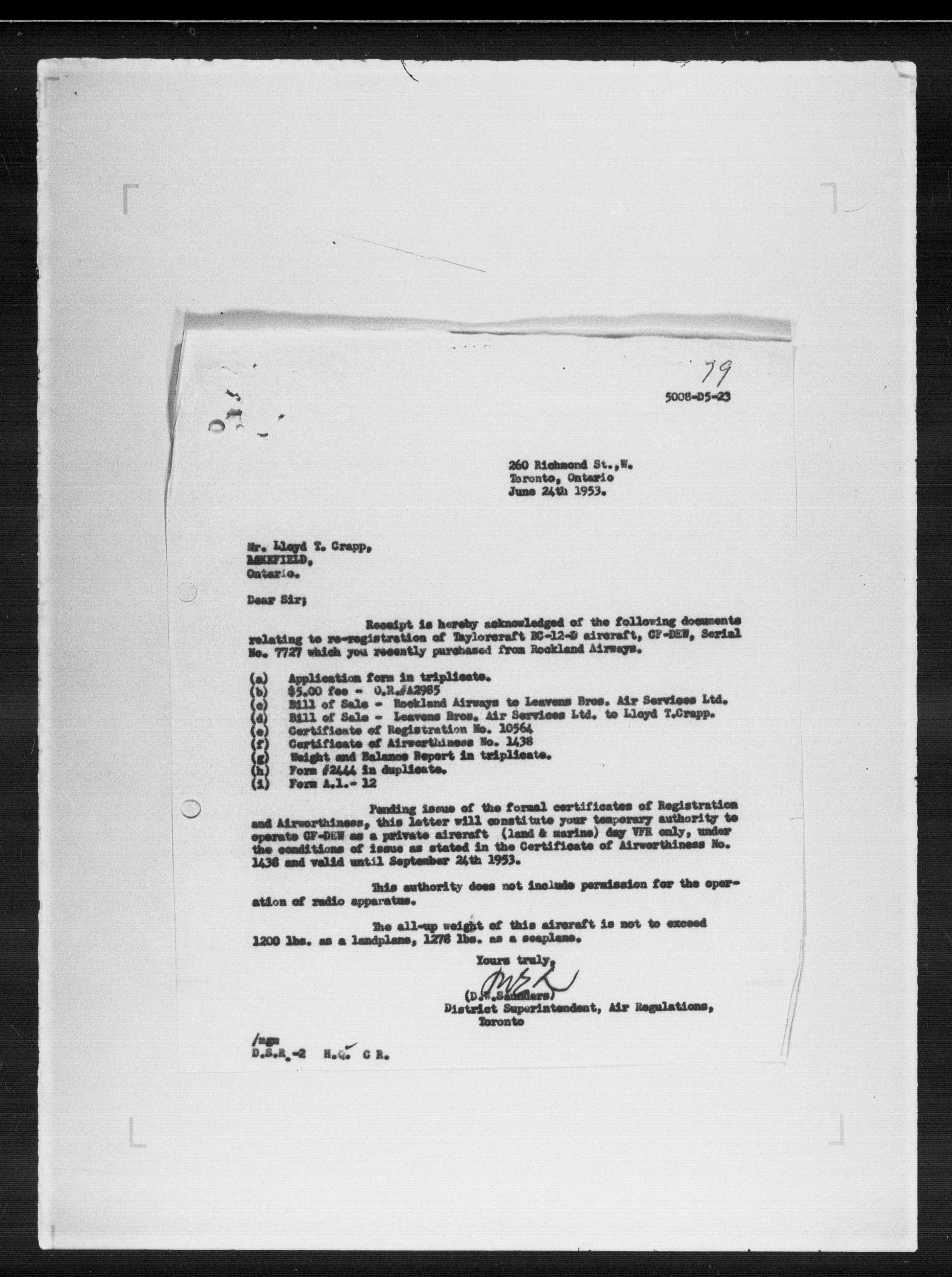 Department of Transport : Civil aircraft registration, inspection and operation files, block 5008, 1920-1986 - 7944