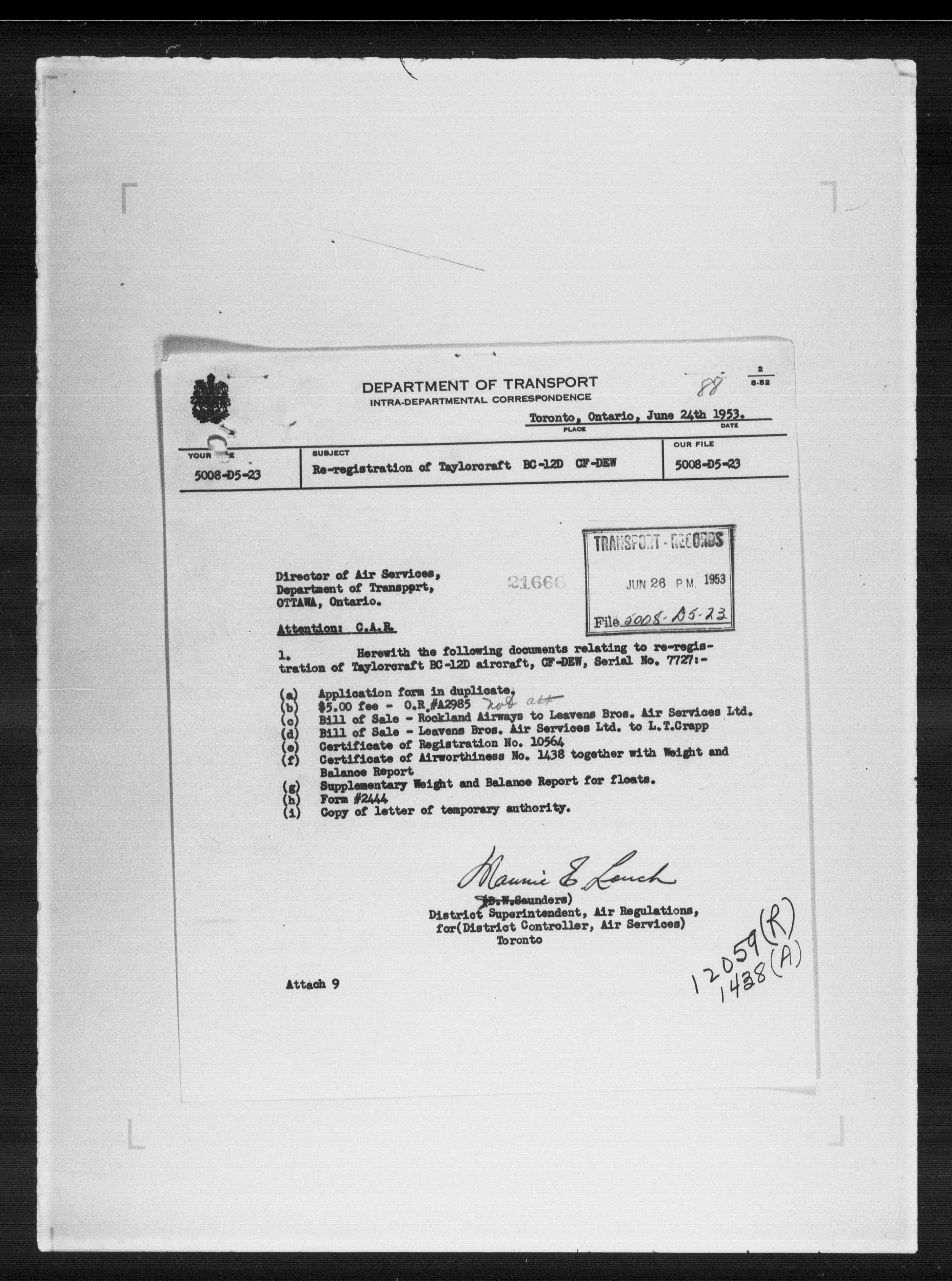Department of Transport : Civil aircraft registration, inspection and operation files, block 5008, 1920-1986 - 7944