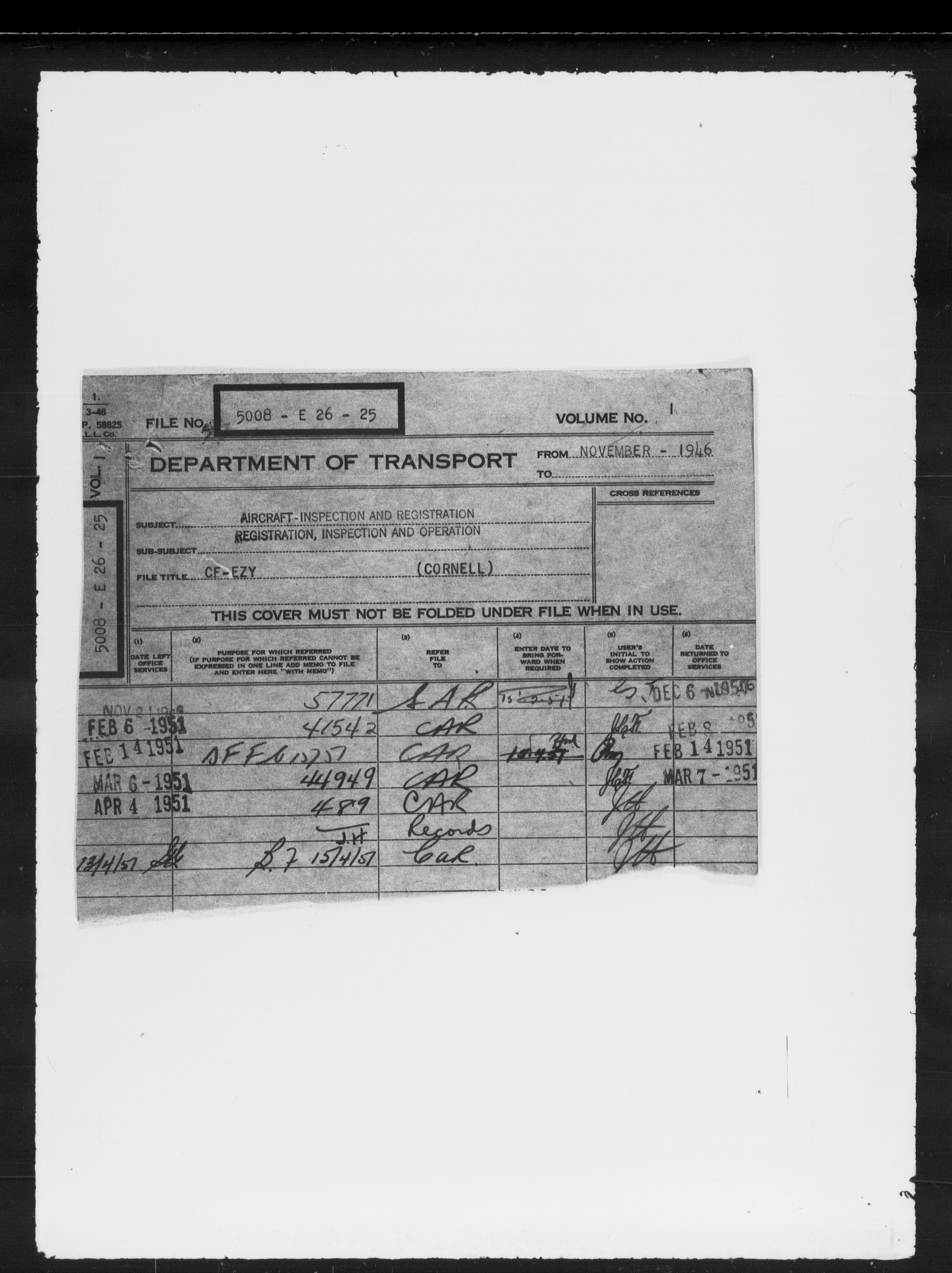 Department of Transport : Civil aircraft registration, inspection and operation files, block 5008, 1920-1986 - 7947