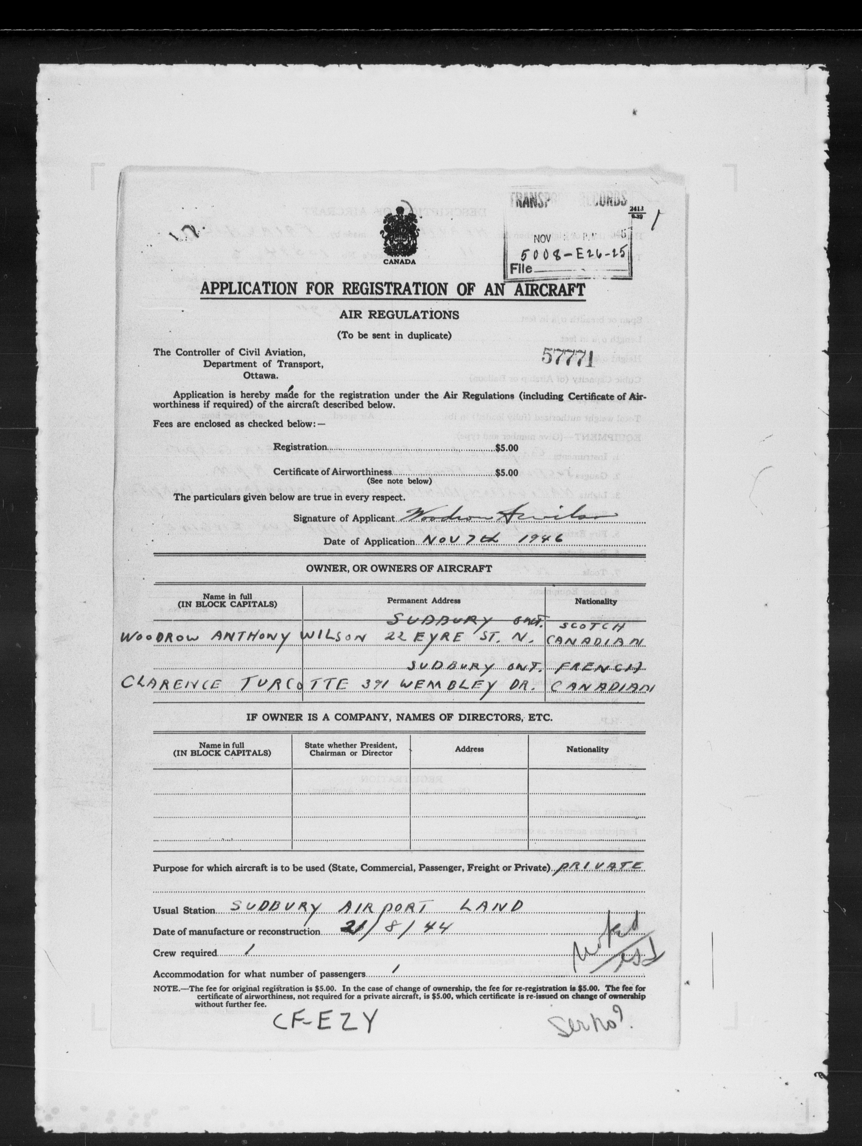 Department of Transport : Civil aircraft registration, inspection and operation files, block 5008, 1920-1986 - 7947