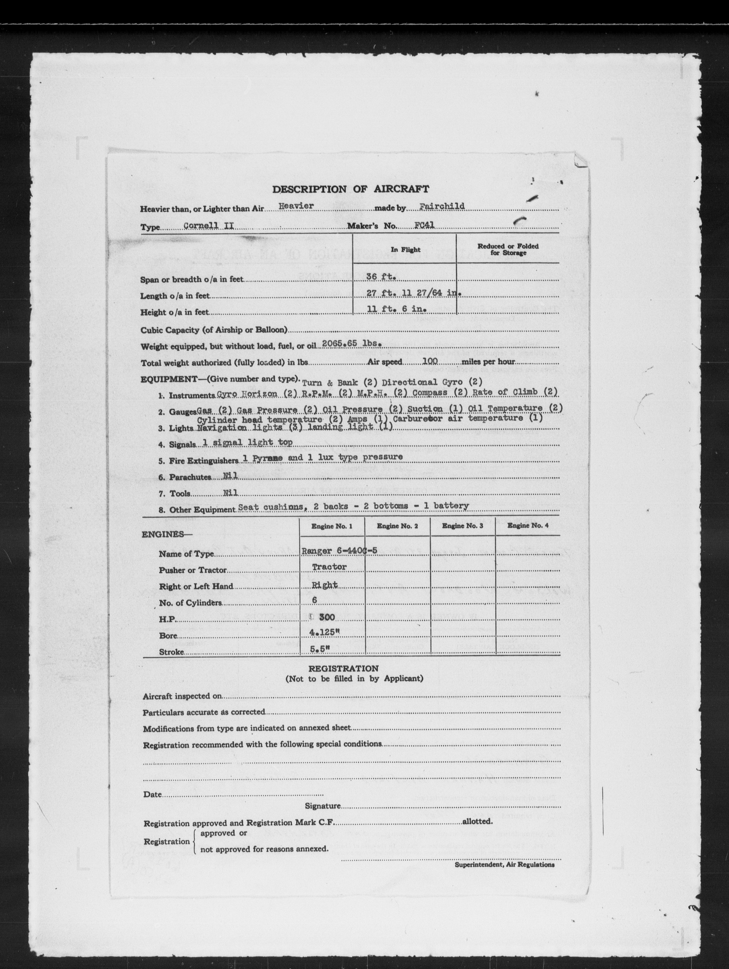 Department of Transport : Civil aircraft registration, inspection and operation files, block 5008, 1920-1986 - 7947