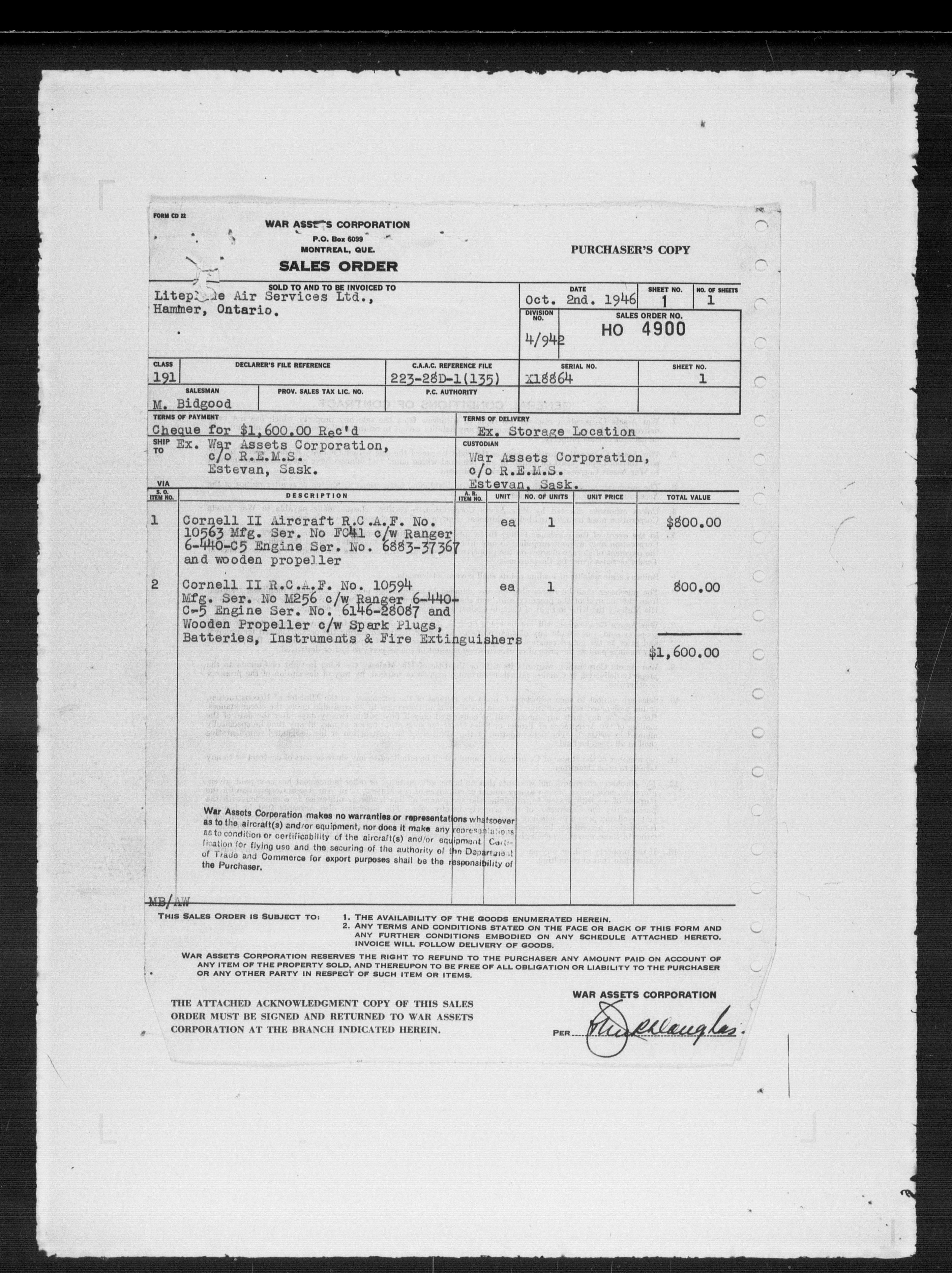 Department of Transport : Civil aircraft registration, inspection and operation files, 1920-1986 : T-7947