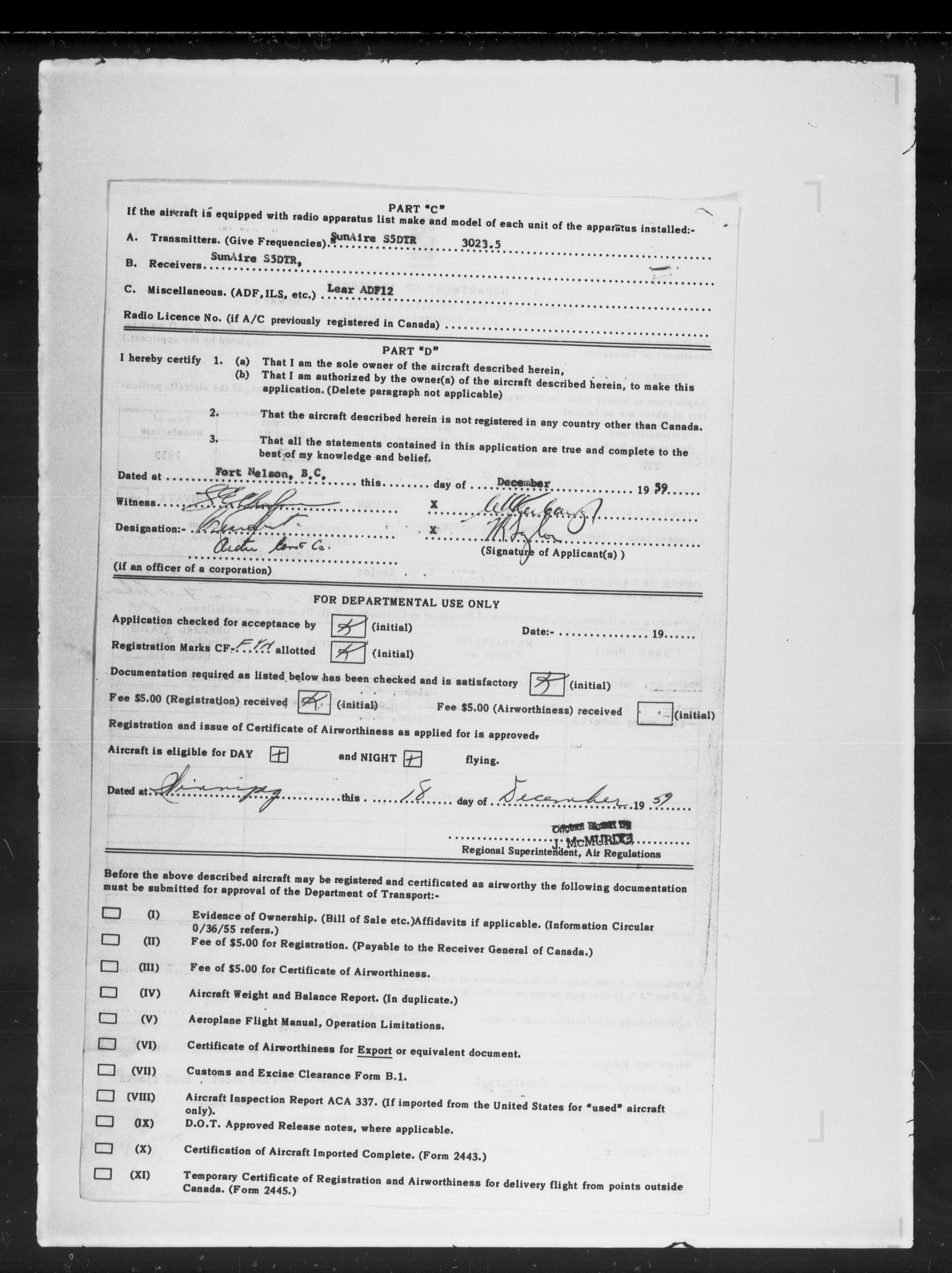 Department of Transport : Civil aircraft registration, inspection and operation files, 1920-1986 : T-7949