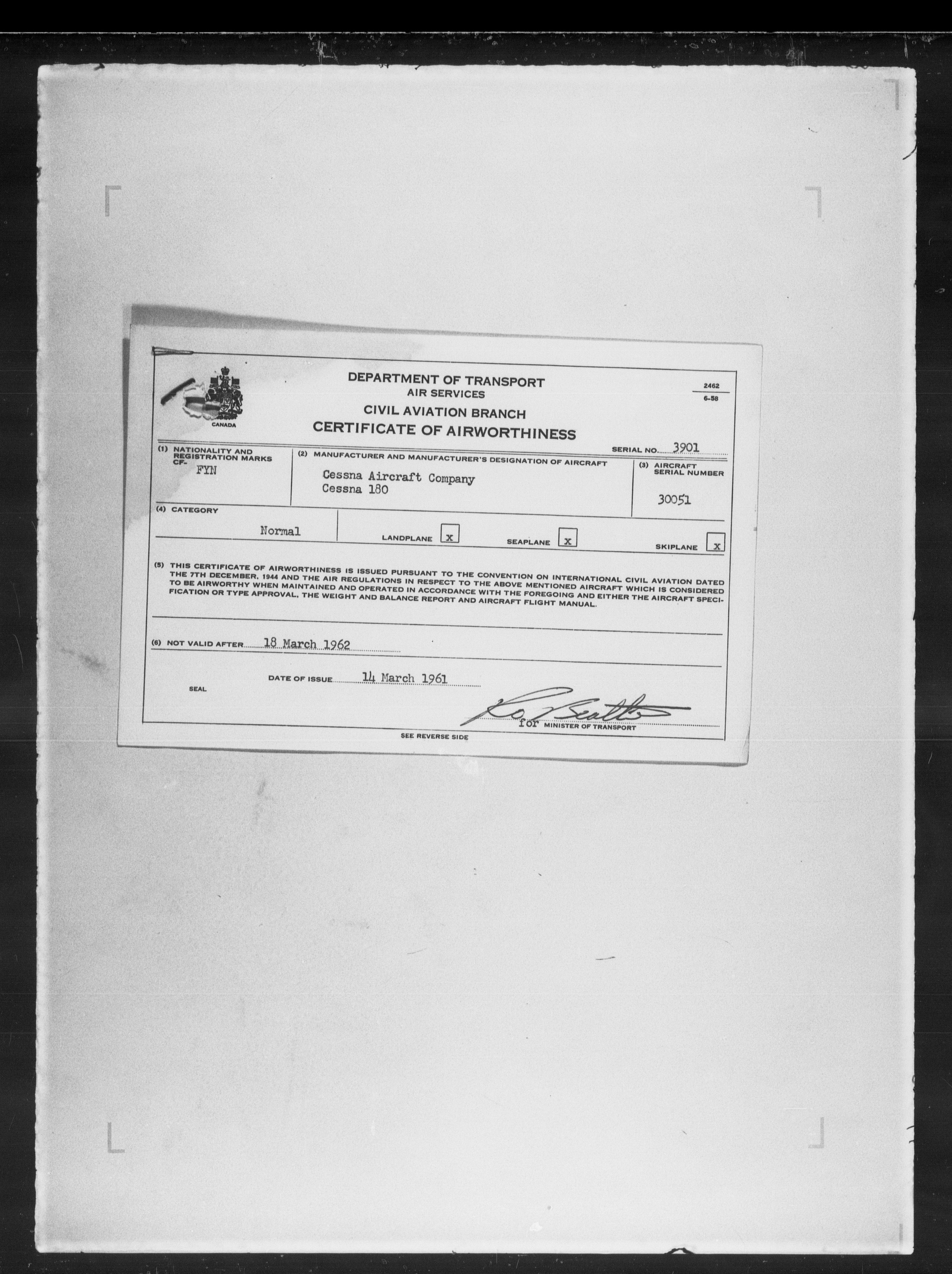 Department of Transport : Civil aircraft registration, inspection and operation files, block 5008, 1920-1986 - 7949