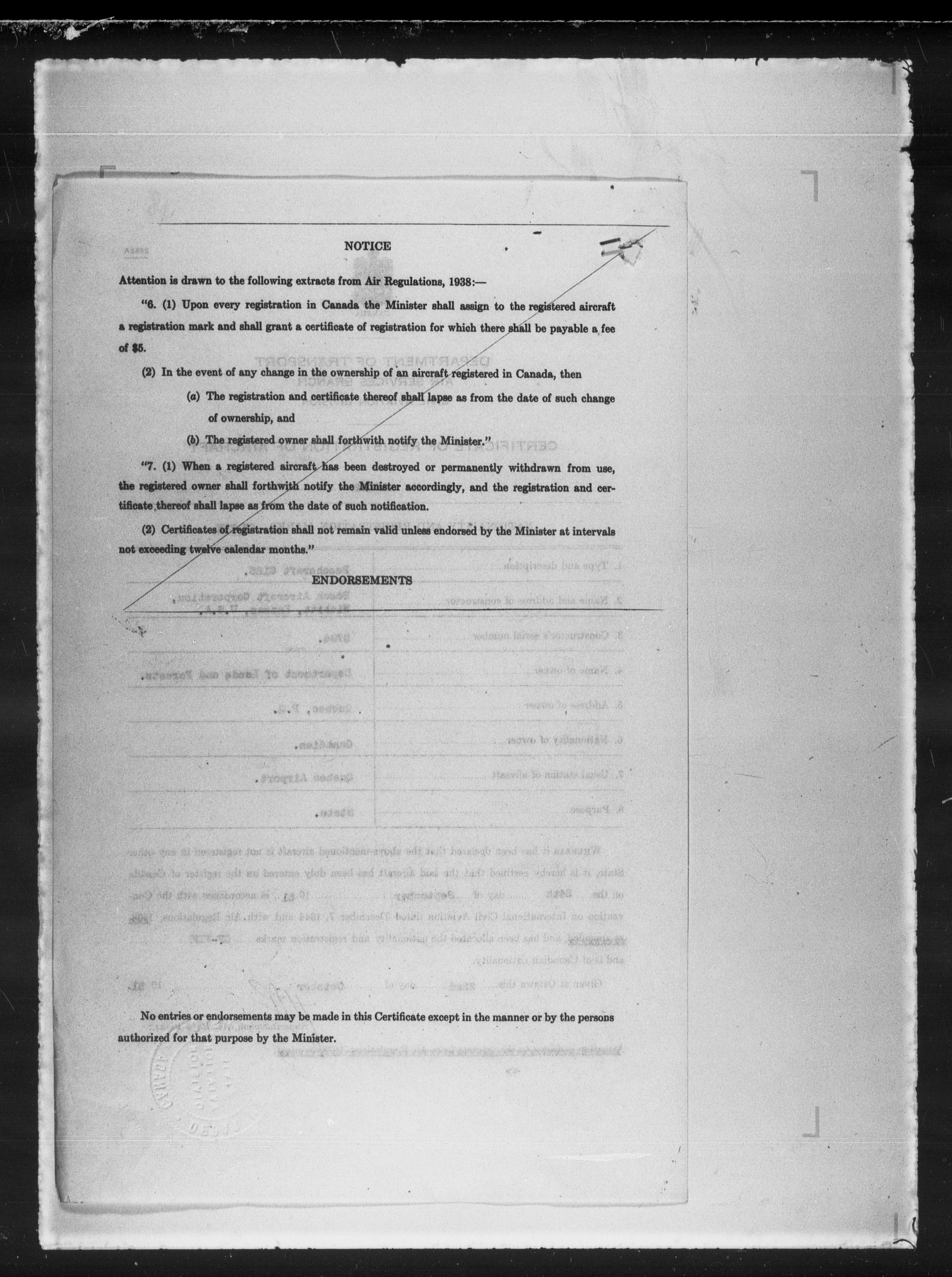 Department of Transport : Civil aircraft registration, inspection and operation files, 1920-1986 : T-7950